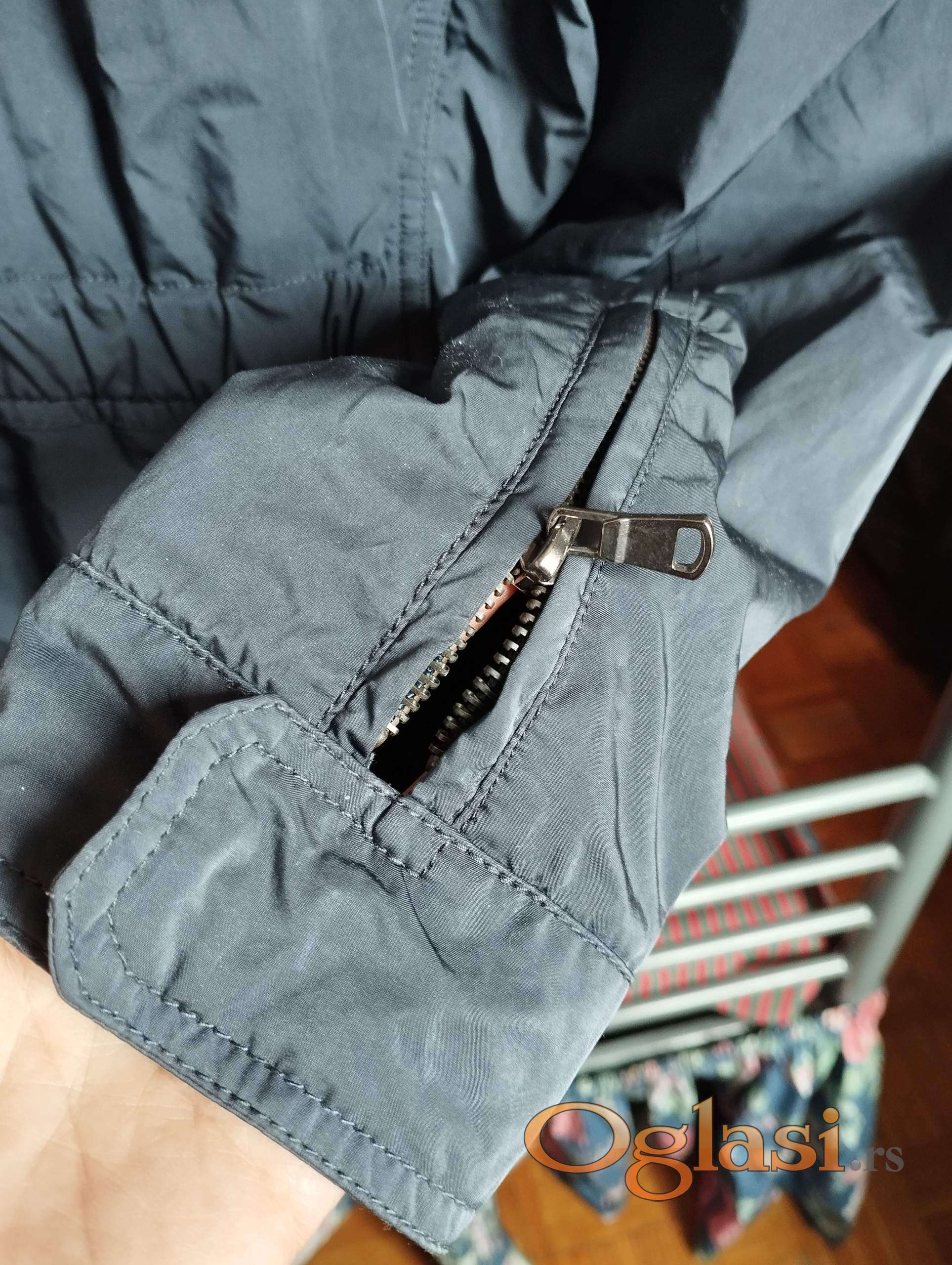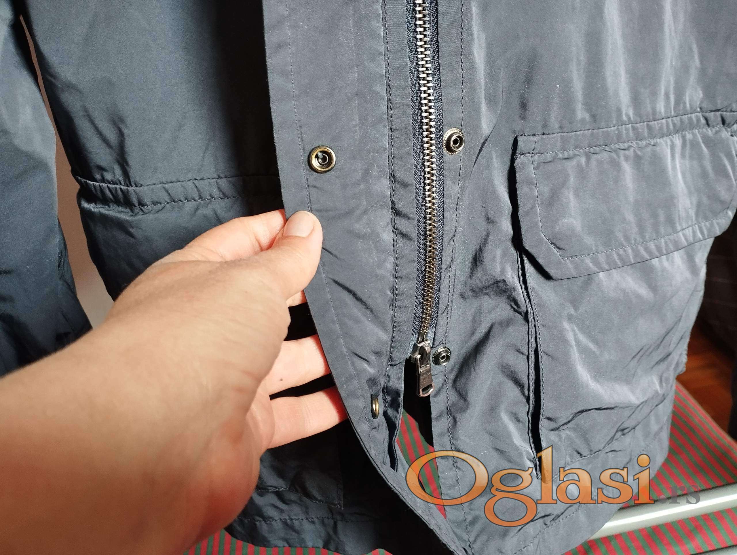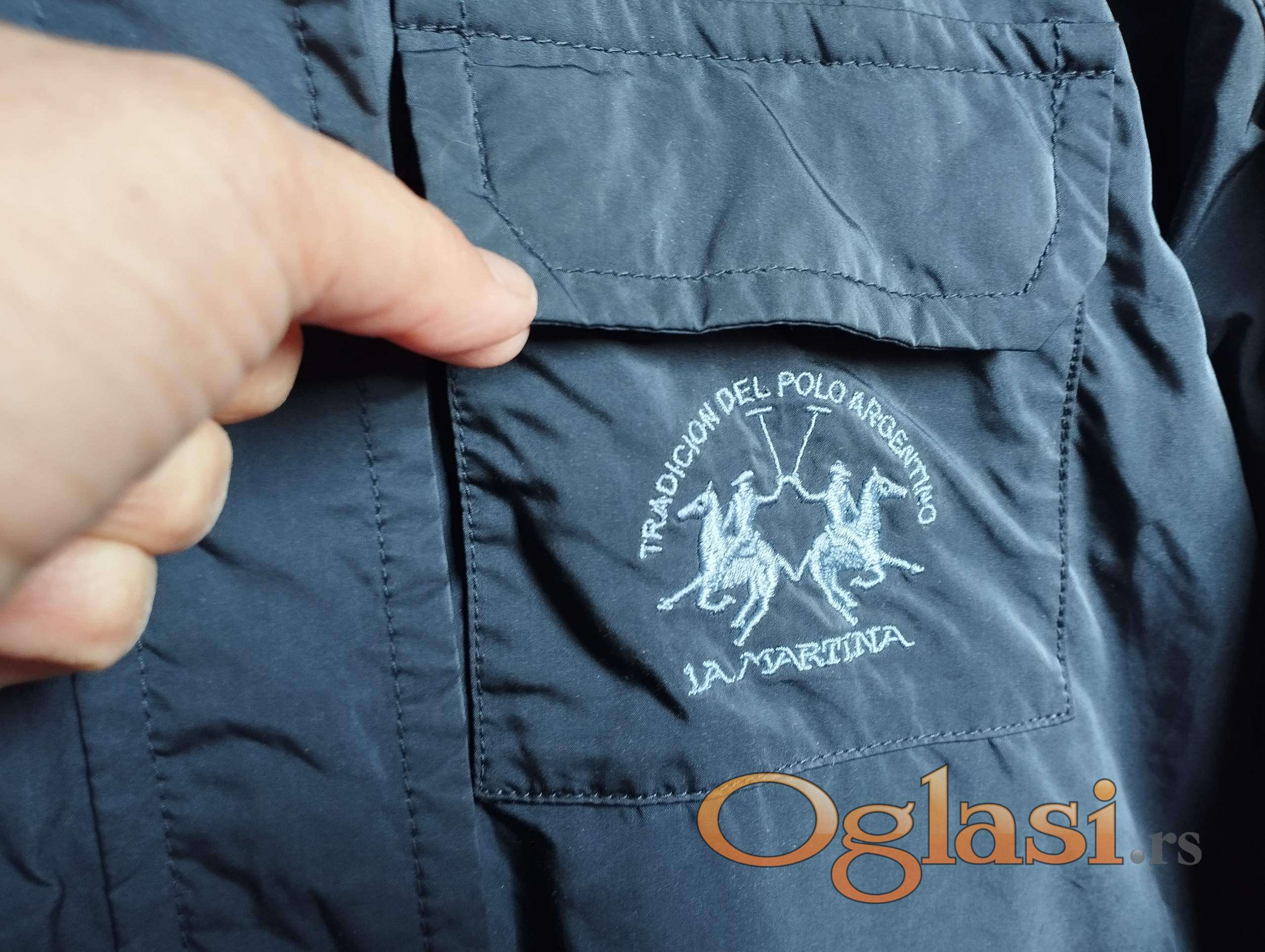 La Martina dečija ili tinejdžerska jakna za proleće ili jesen (polusezona) u tamno sivoj boji za devojčice uzrasta 8-10 godina. Visina je približno 140 cm (veličina 1). Širina u struku je 80 cm, dužina jakne od ramena do ruba je 65 cm, dužina rukava je 57 cm. Kapuljača se može skinuti, dužina rukava se može podesiti. Proizvedeno u Vijetnamu. 3 spoljna džepa i 3 unutrašnja džepa. Sastav: 70% poliester, 30% najlon, unutrašnja tkanina - pamuk. Troškove poštarine snosi kupac. Tel. 0603287612