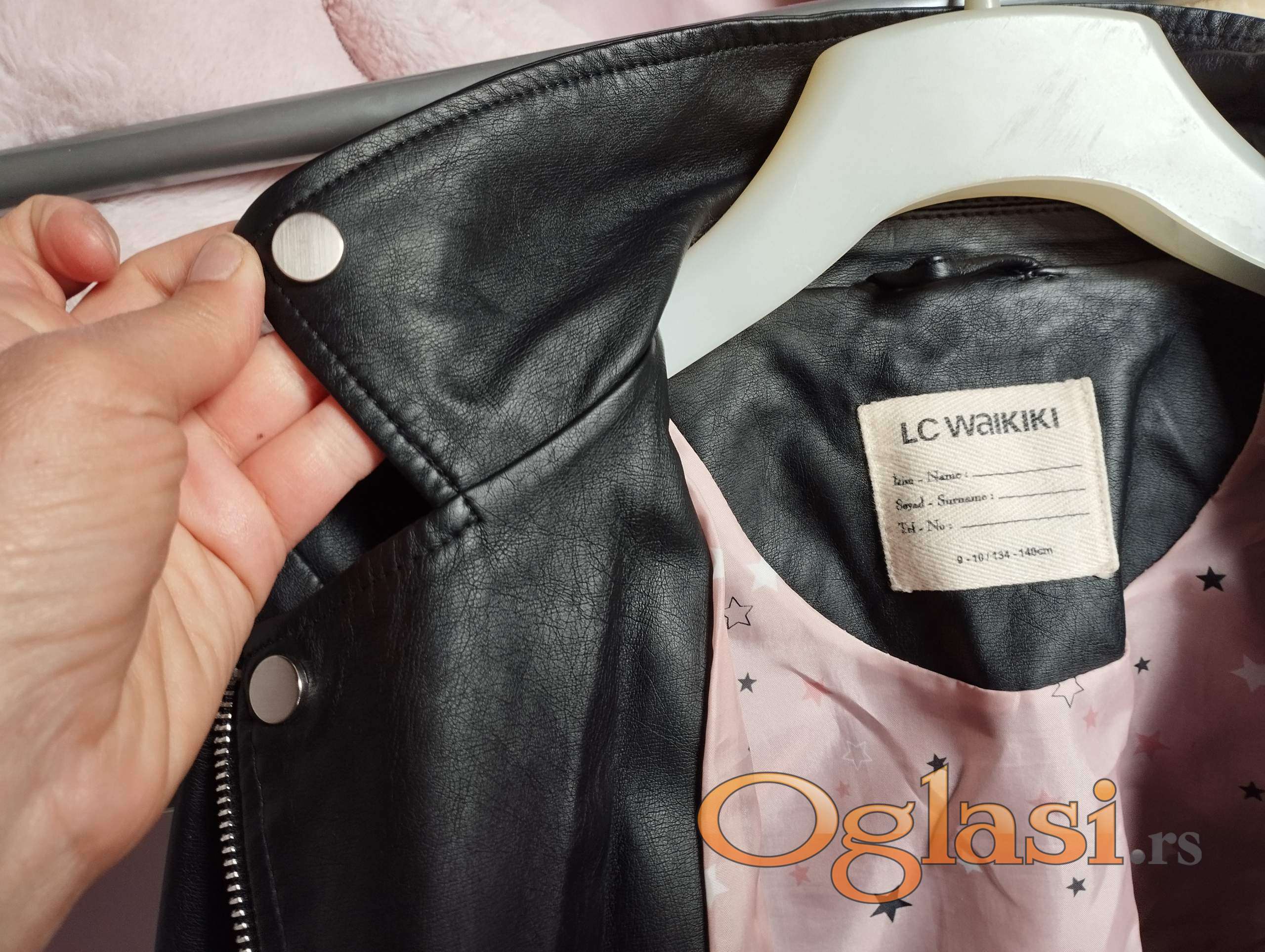 Moderna crna LC WAIKIKI jakna od veštačke kože za devojčice uzrasta 7-10 godina, idealna za proleće ili leto. Zakopčavanje rajsferšlusom. Visina 134-140 cm (veličina 9-10). Struk 80 cm, rub 80 cm, od ramena do ruba 49 cm, rukav 52 cm. Bez kapuljače. Dva džepa. Proizvedeno u Kini. Kupac plaća poštarinu. Tel. 0603287612