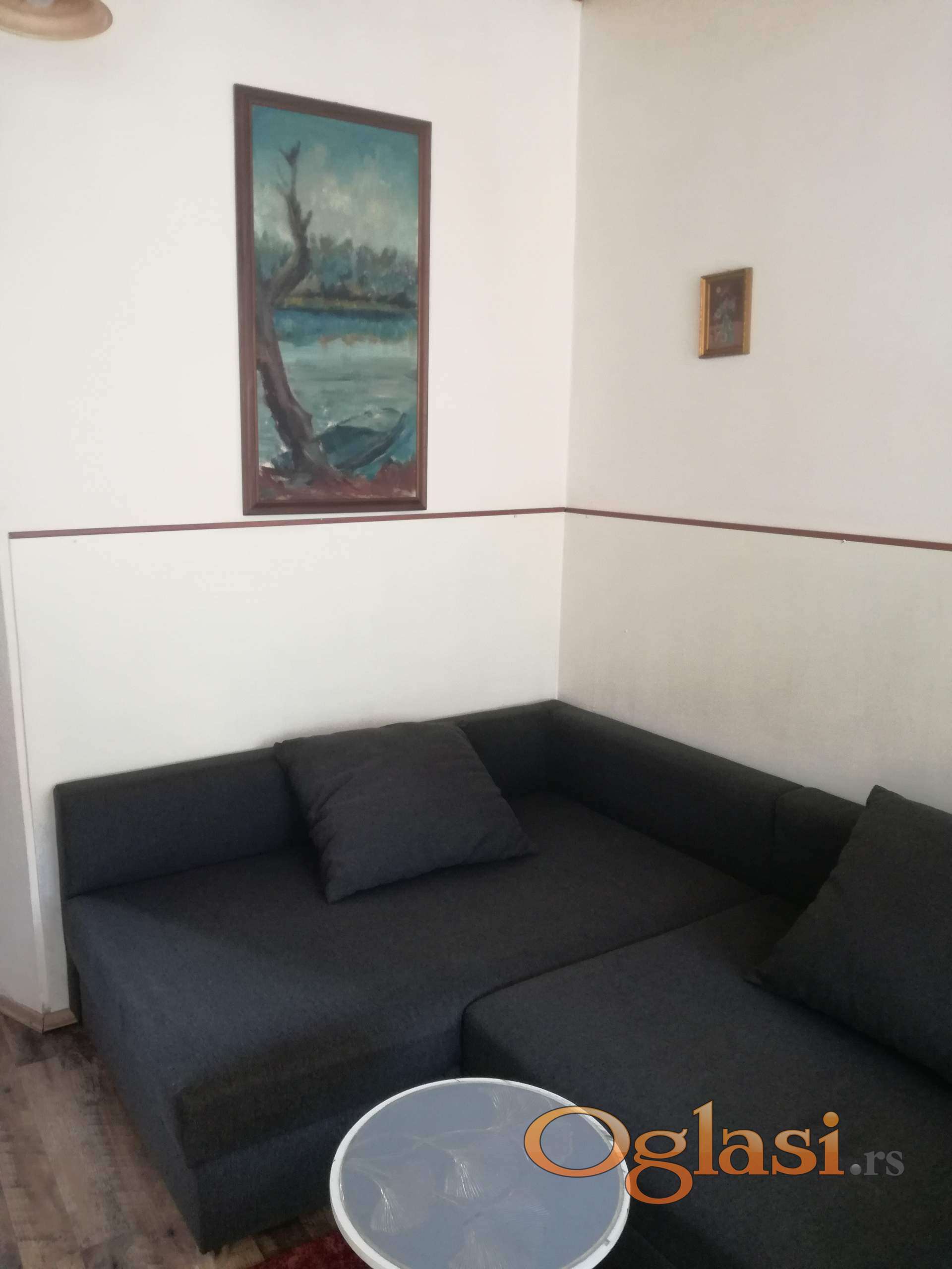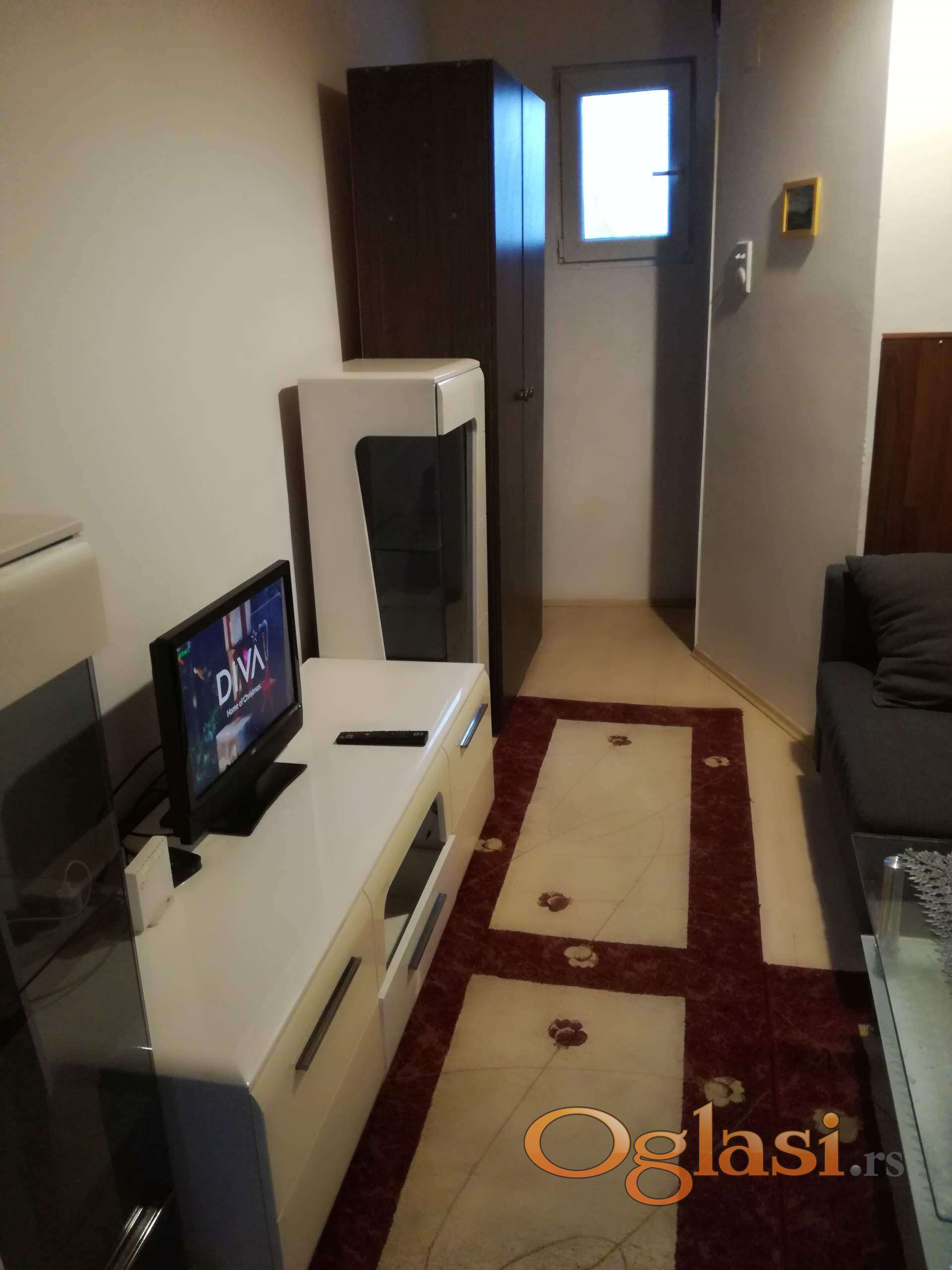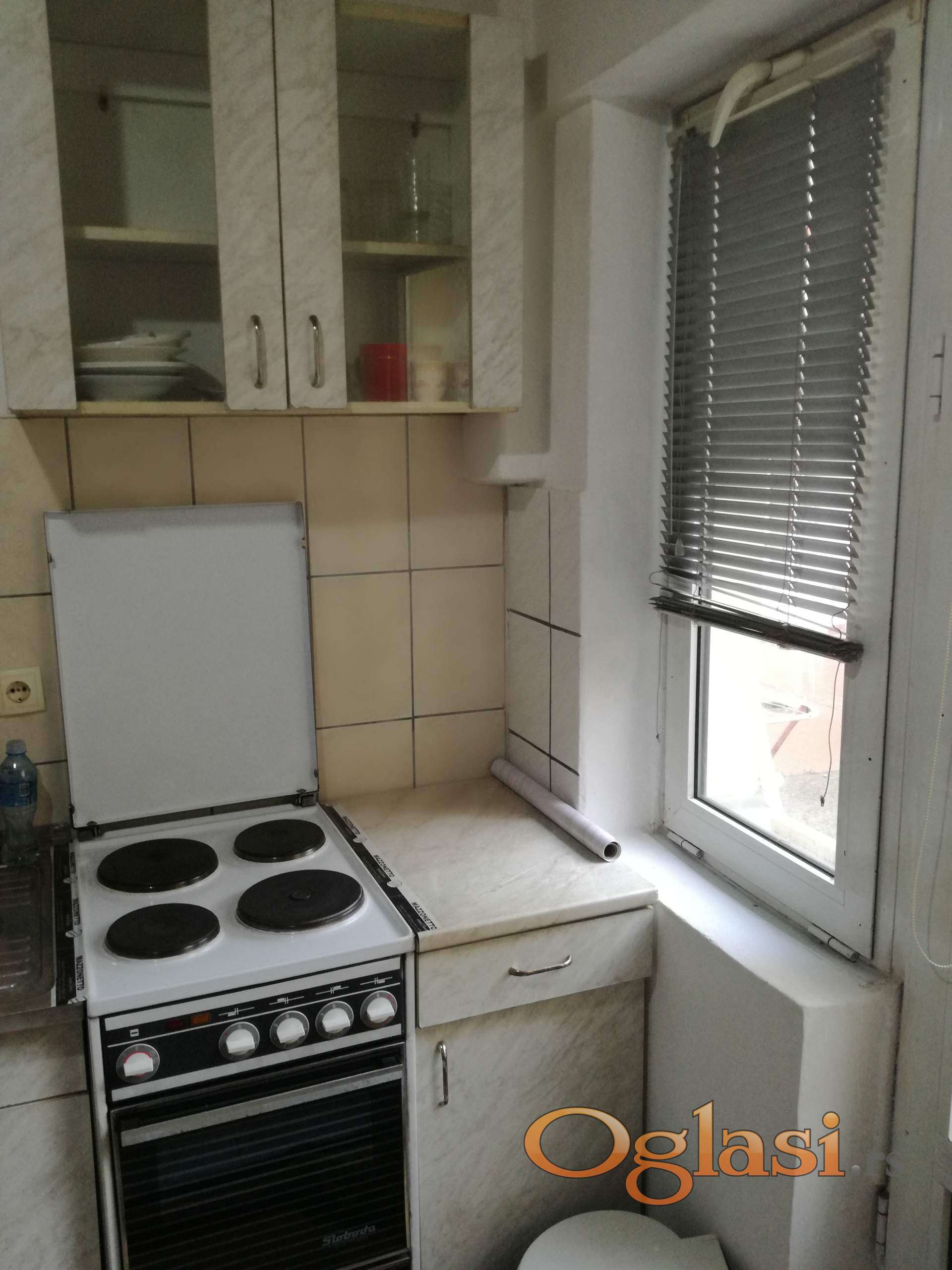 Garsonjera je odmah useljiva . Depozit 150 E. Mesečni troškovi mali jer wifi i informatika se plaća pola cene(oko 8000-8500 din).Tri prostorije : Kuhinja,soba i kupatilo.Ugaoni ležaj se razvlači u dva ležaja pa se dobija prostran bračni krevet(slika 6 i 7)), ormar, cipelarnik,TV, klima uređaj, veš mašina, žica za sušenje veša,usisivač, pegla na paru. Iznad kupatila je mali tavan za ostavljanje robe, leti zimske a zimi obnuto,kao i torbi i kutija od selidbe. Sve ostalo se vidi na fotografijama. Na 150m je autobuska okretnica za sve delove grada. Preporučljivo za 1 osobu.Sve nenamerne kvarove otklanjam o svom trošku. No pets!