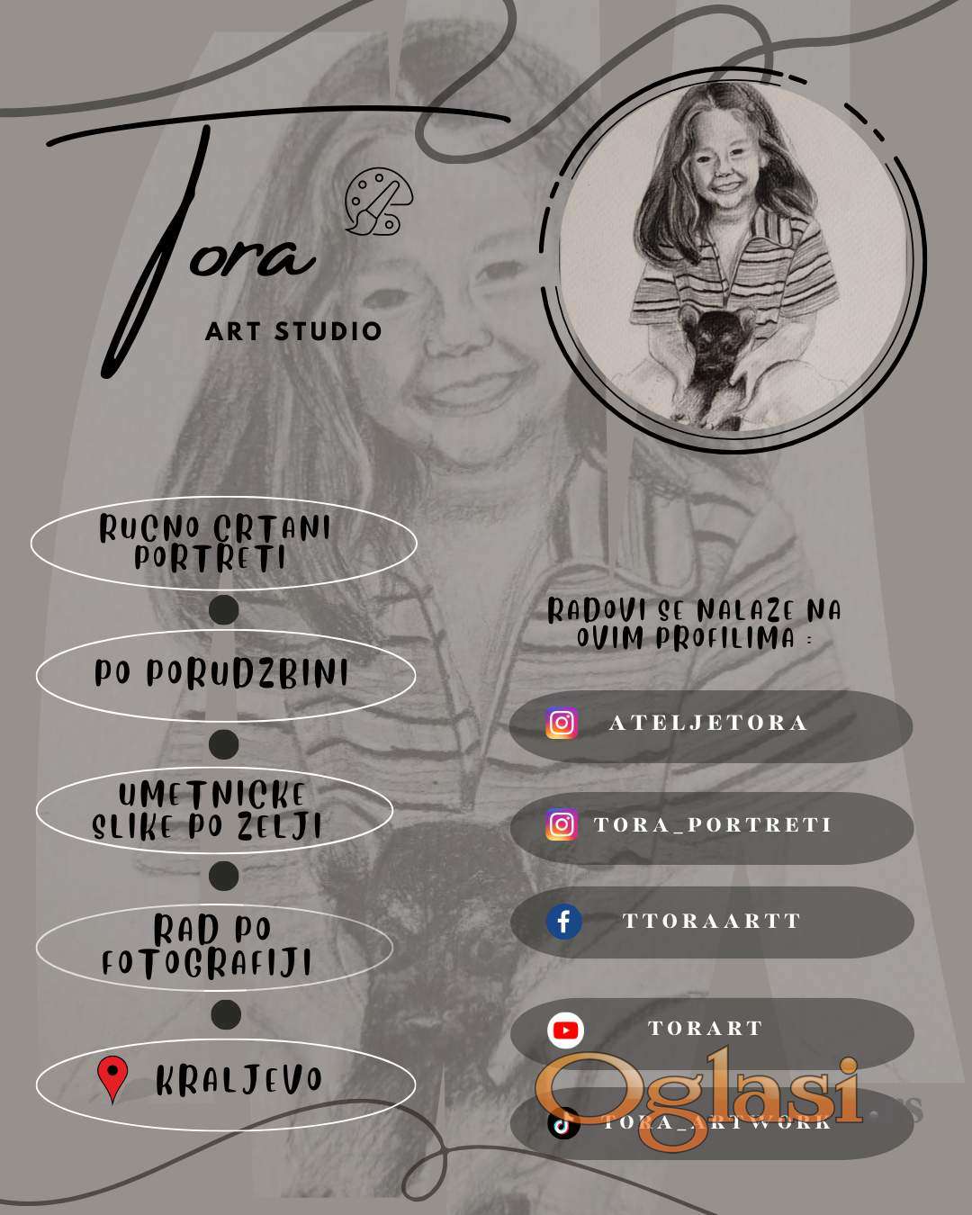 Radove mozete pogledati na profilima @tora_portreti @ateljetora