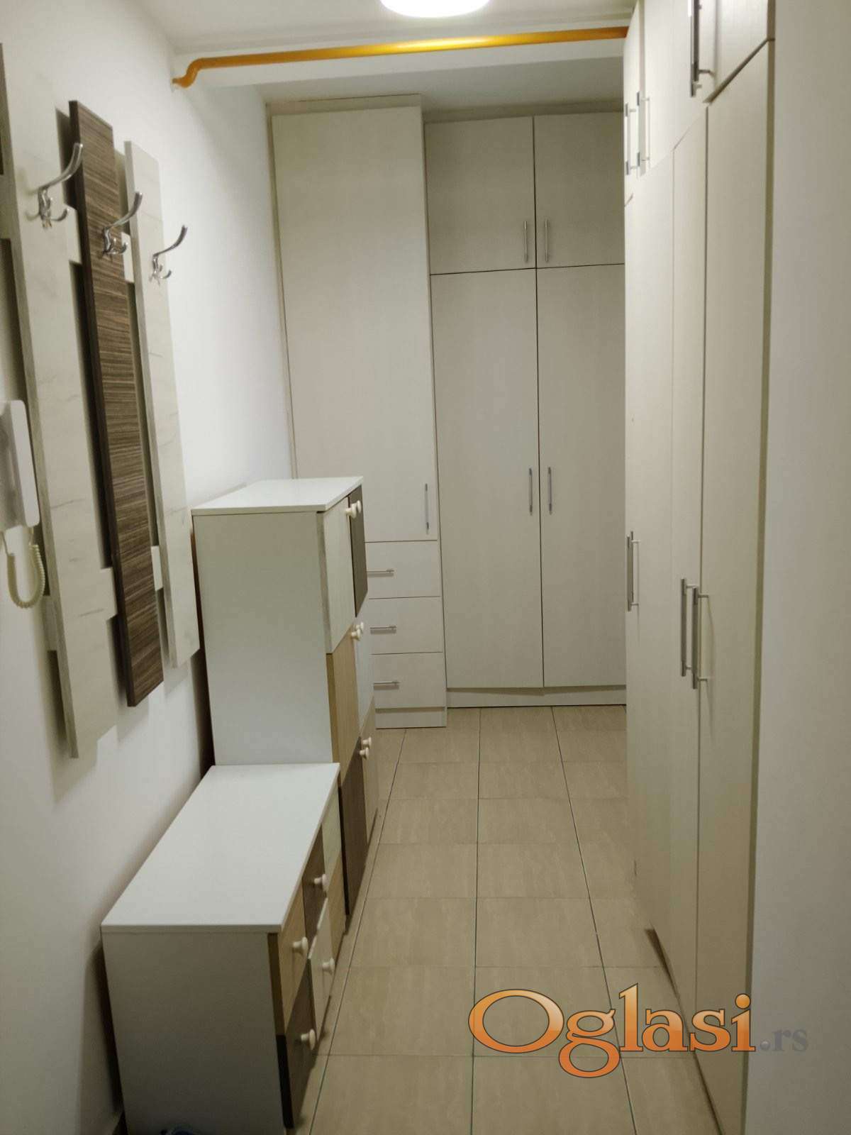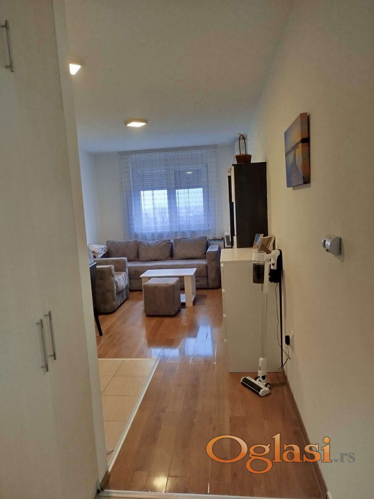 Poseduje dnevnu sobu sa kuhinjom, prostran hodnik sa ugradnim ormarima, spavacu soba sa izlazom na terasu,kupatilo sa tus kabinom...