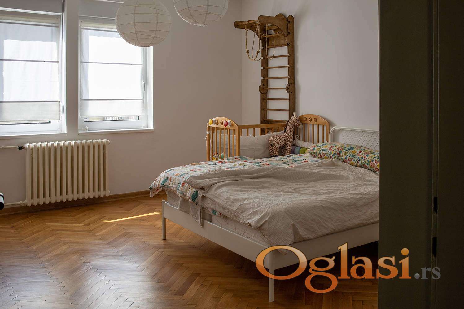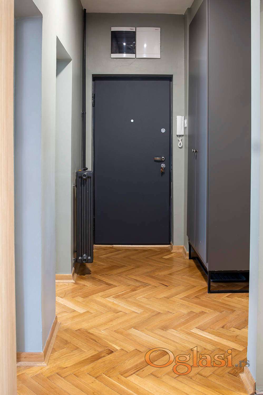 Od radova je jos ostalo da se stavi parket/laminat u manjoj sobi i da se stave pragovi i klizna vrata u kuhinji (klizači i šina su već ugrađeni)