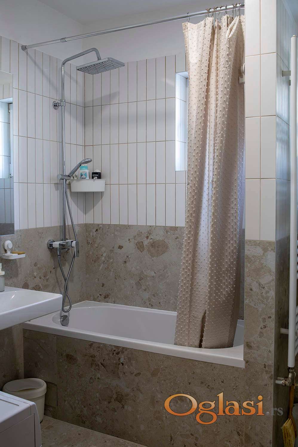 kompletno zamenjene sve cevi za vodu u stanu, urađena hidroizolacija, postavljena vrhunska španska keramika brenda Navarti i italijanska keramika brenda 41zero42