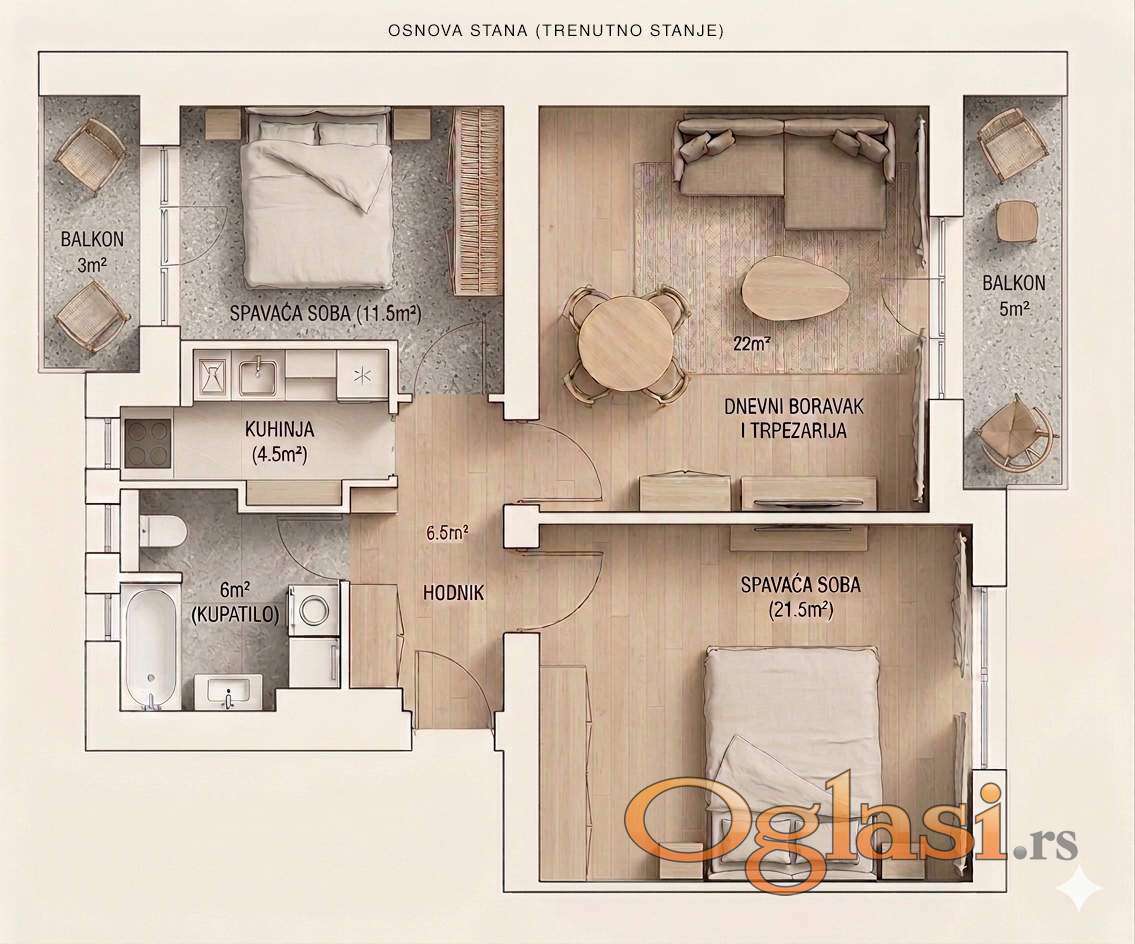 Stan je potpuno renoviran na jesen 2025. godine: