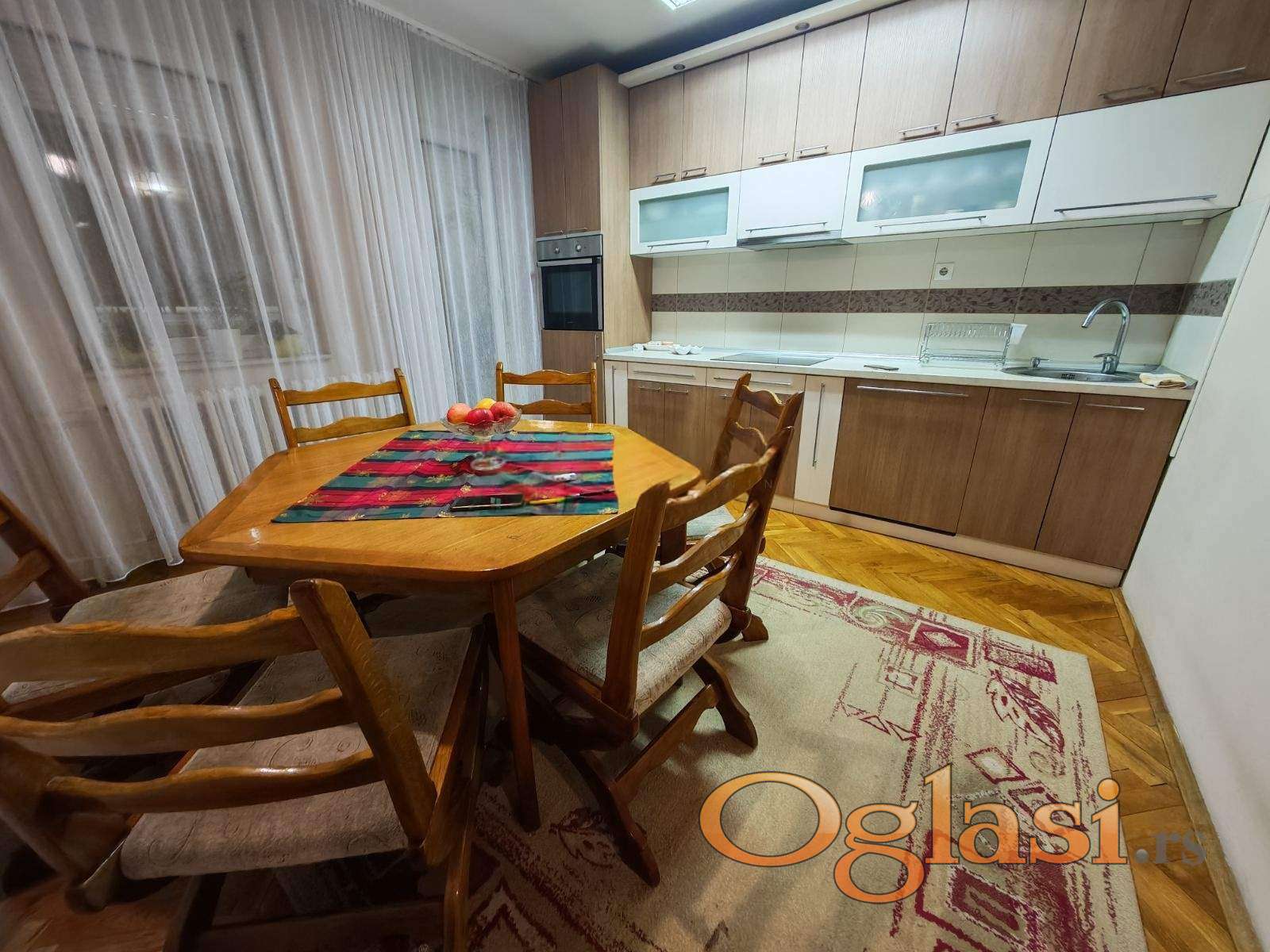 Opremljenost: Namešteno - internet, TV, klima, veš mašina, kuhinjski elementi, sudo mašina, frižider, zamrzivač, mikrotalasna rerna, šporet, rerna, ležaj, plakar