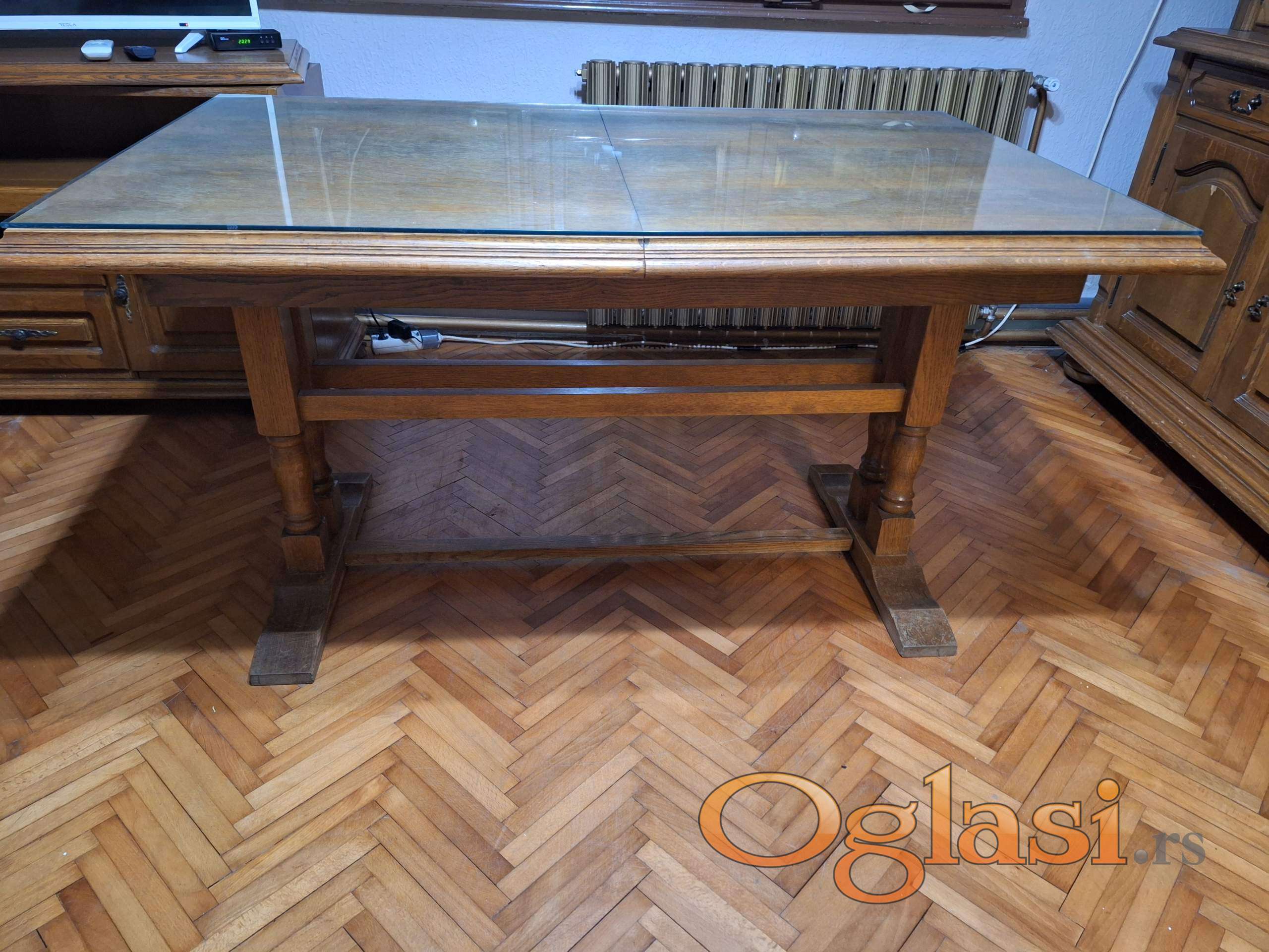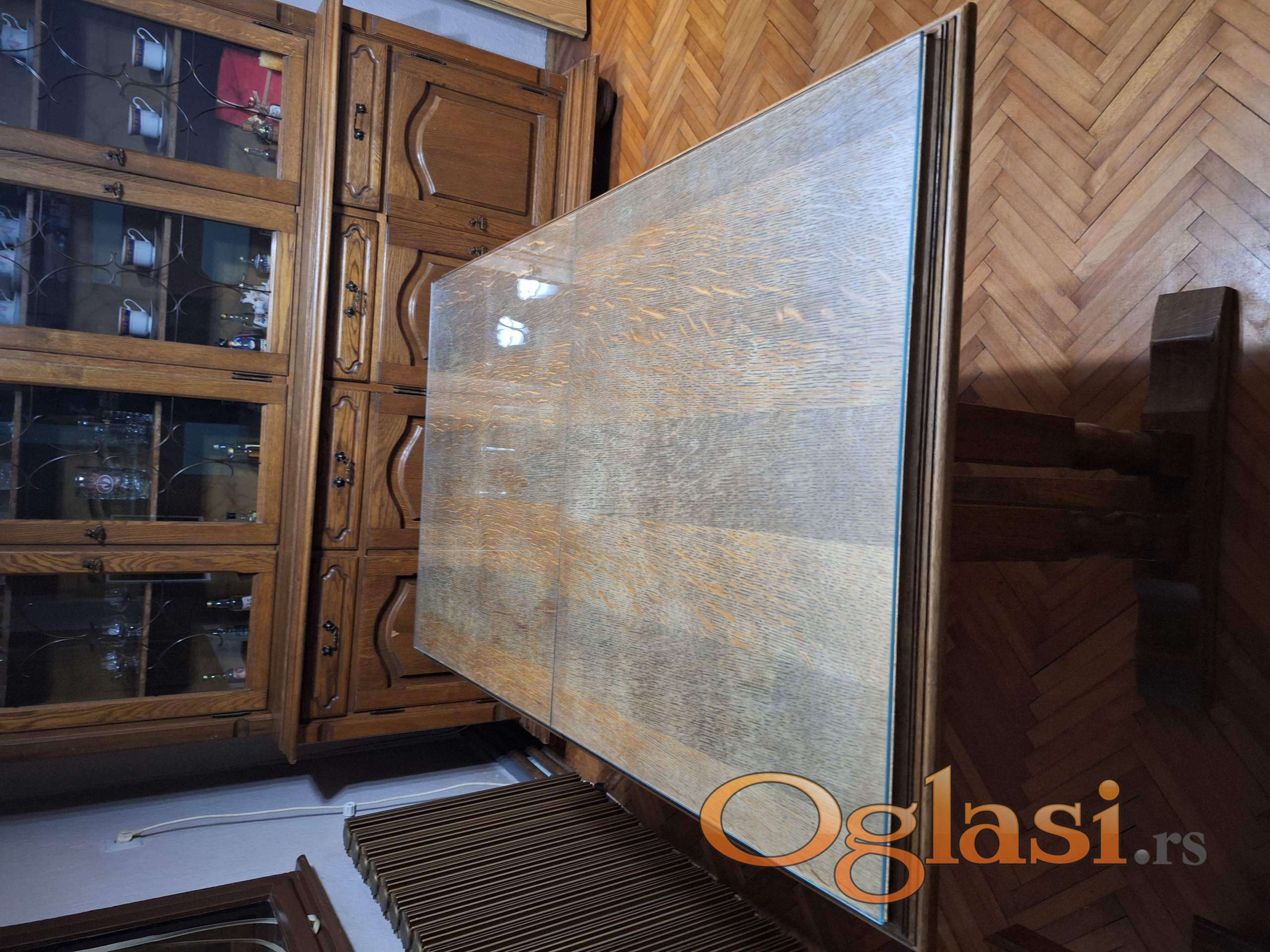 - Sto je izradjen takodje od drveta i furnira. (staklo gratis) Dimenzije: (Širina x Dubina x Visina) u cm: 140 x 86 x 78