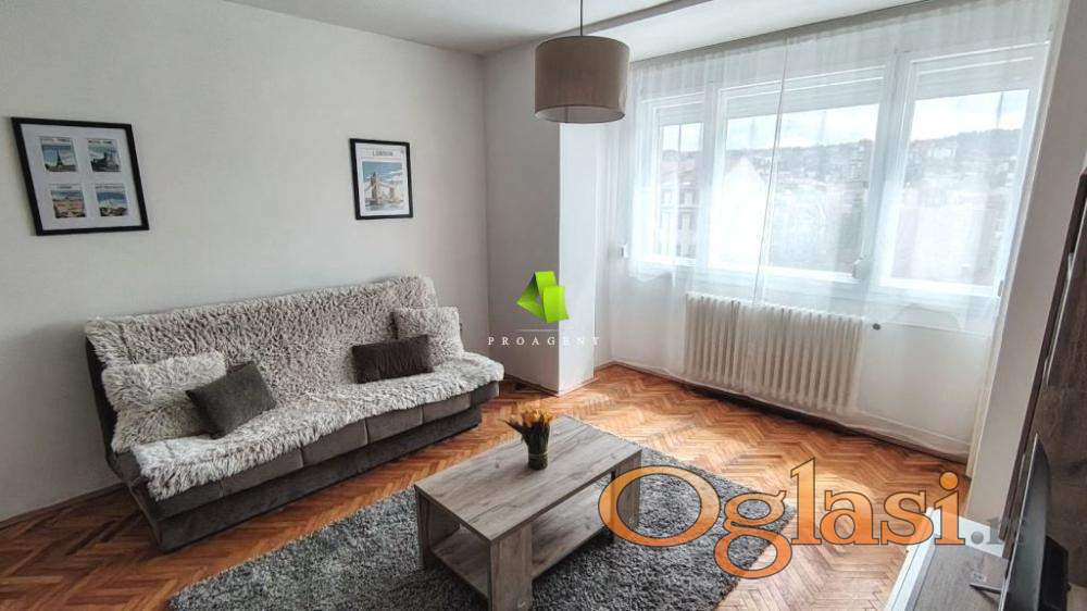Izdaje se komforan dvosoban stan u centru, u blizini OŠ ´Učitelj Tasa´. Površrine je 60m2, nalazi se na V spratu stambene zgrade sa dva lifta. Struktura stana: ulazni hodnik, dnevni boravak sa trpezarijom, odvojena kuhinja, spavaća soba, toalet, kupatilo i terasa. Grejanje je centralno. Stan je orijentisan ka jugu, svetao je i topao. Opremljen je nameštajem i potrebnim uređajima i u neposrednoj blizini ima sve što Vam je potrebno za svakodnevno normalno funkcionisanje. Agencijska usluga za iznajmljivanje nekretnine je polovina jedne mesečne kirije, koja se naplaćuje jednokratno. Hvala Vam što ste pogledali oglas. Za više informacija o ovoj ili drugim nekretninama i zakazivanje razgledanja kontaktirajte agenta na broj telefona iz oglasa (poziv, sms, viber) ili putem e-maila. Kompletnu ponudu dostupnih nekretnina možete pronaći na našem sajtu. Agencija Proagent nekretnine je upisana u Registru posrednika pod brojem: 940.