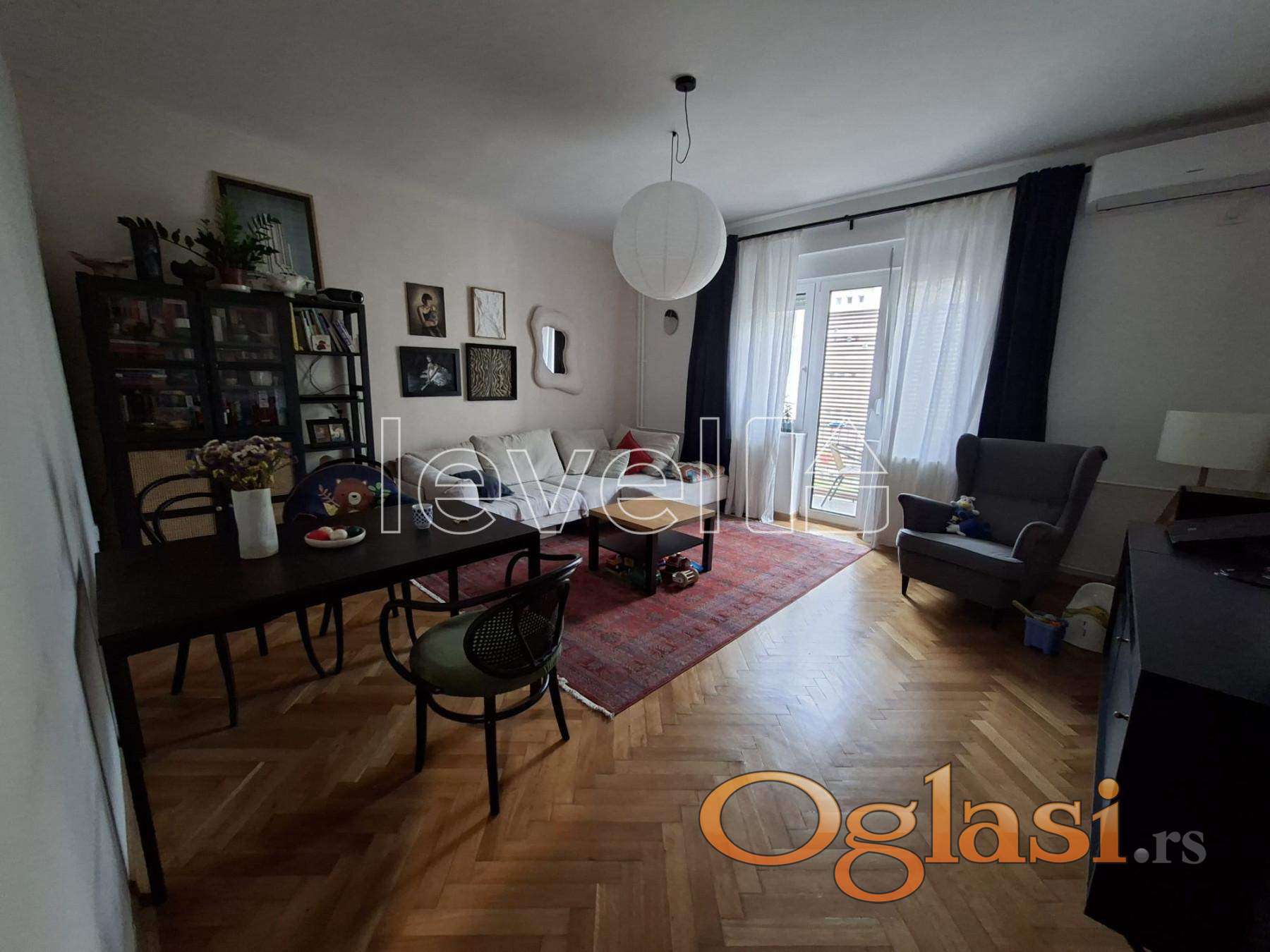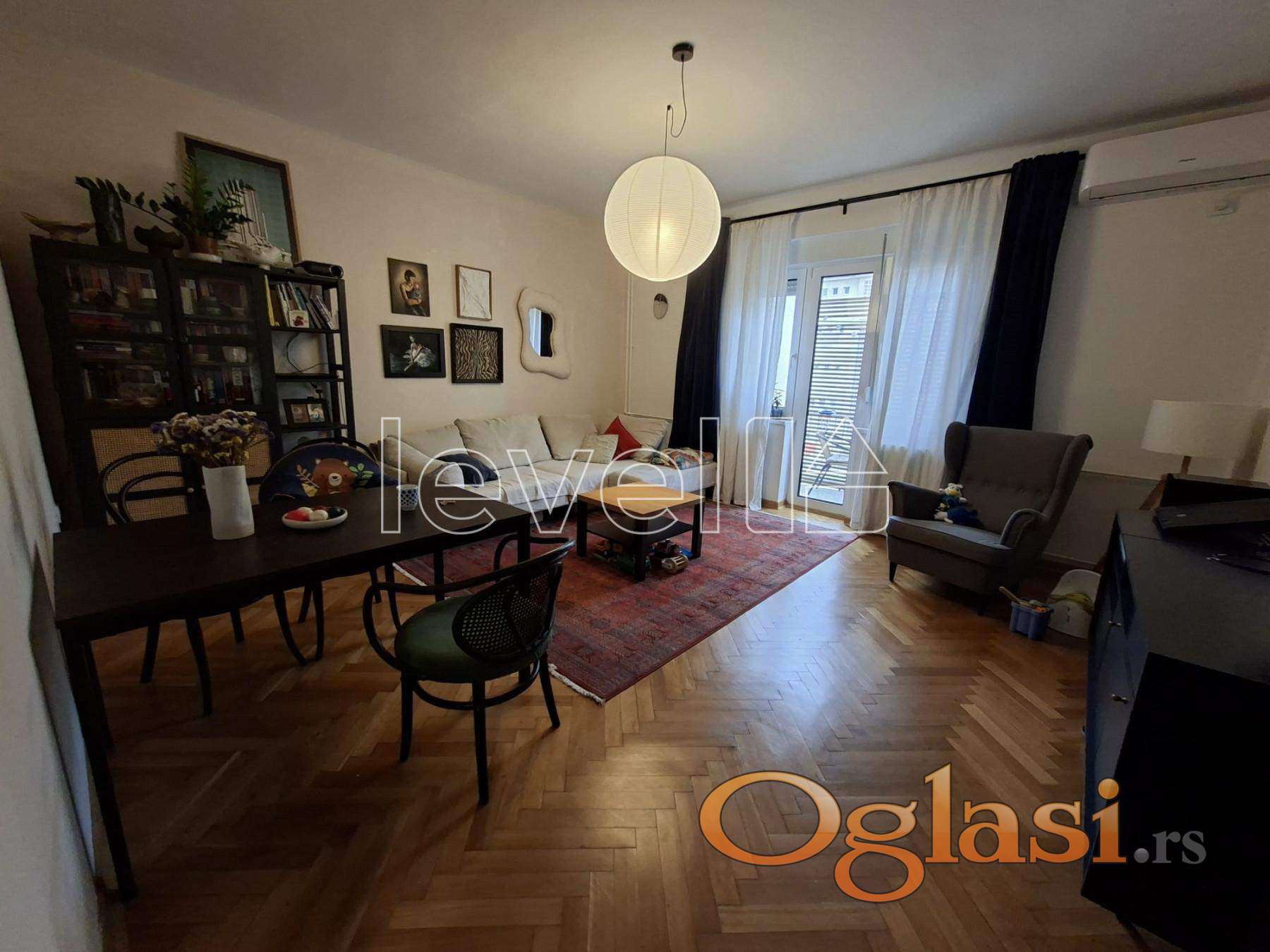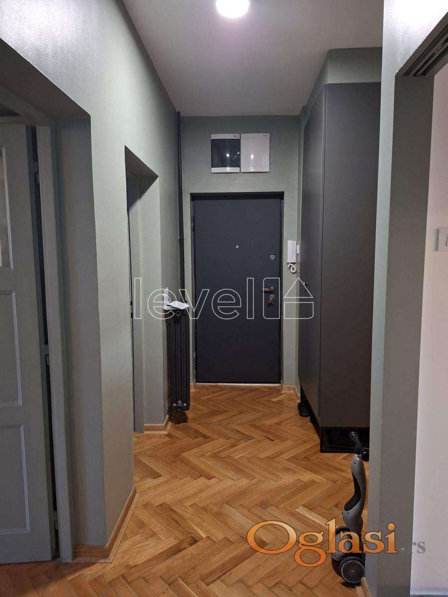 Na minut od Beogradskog keja i nekoliko minuta od Dunavskog parka i pešačke zone, nalazi se ovaj potpuno renoviran stan od 72m², uz dve terase (ukupno oko 8m² koje nisu uknjižene).