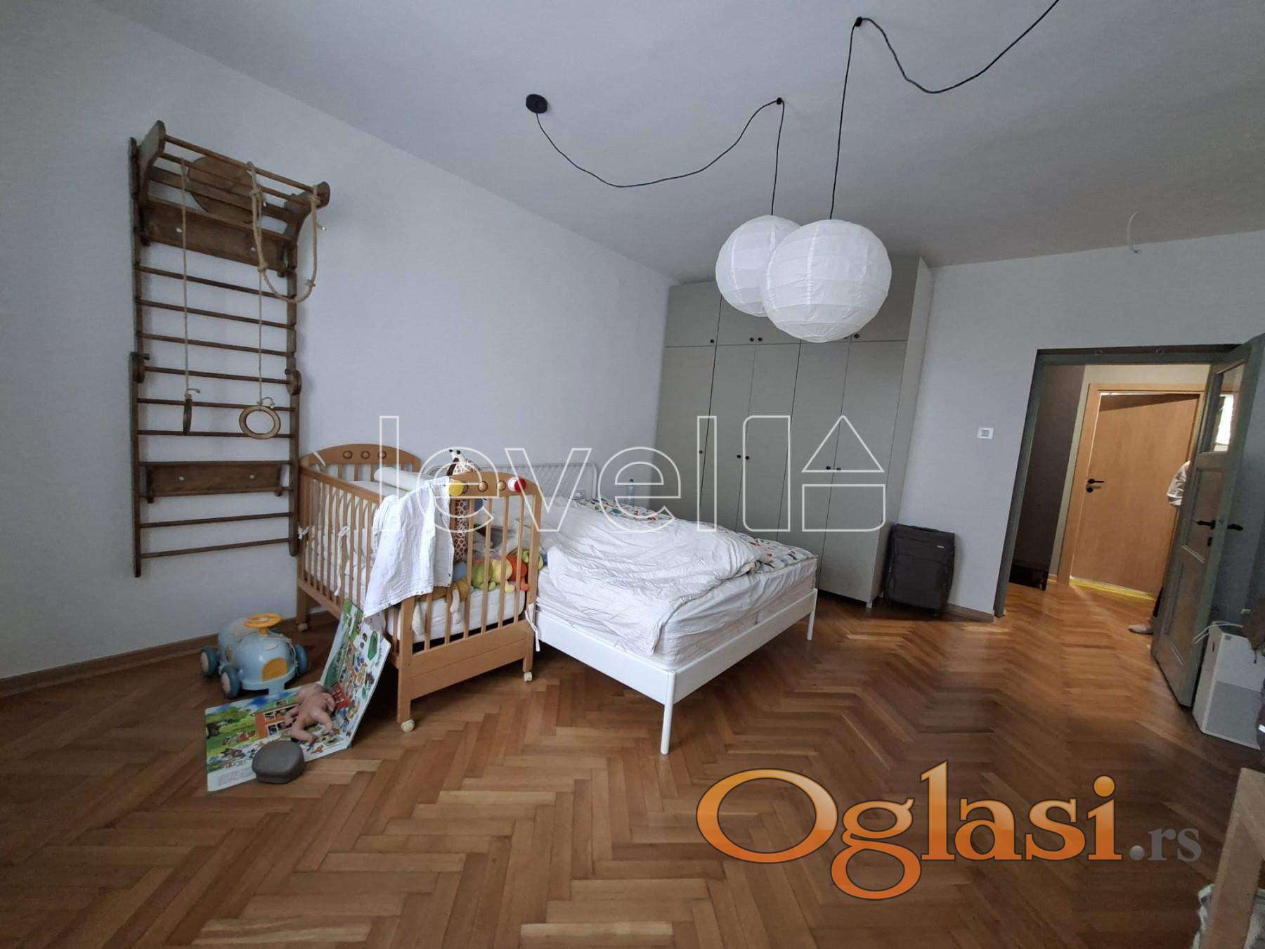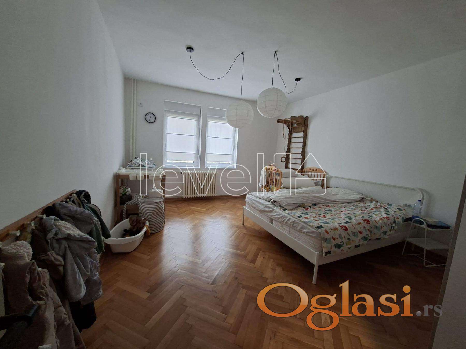 Velika soba se dodatno može pregraditi, čime se dobija funkcionalan 3,5-soban stan — retka opcija u ovoj kvadraturi.