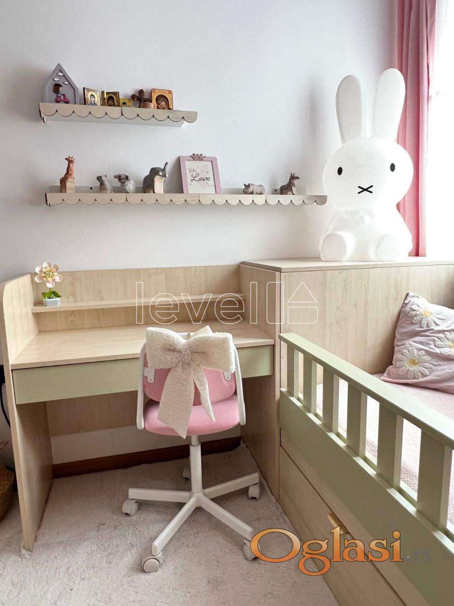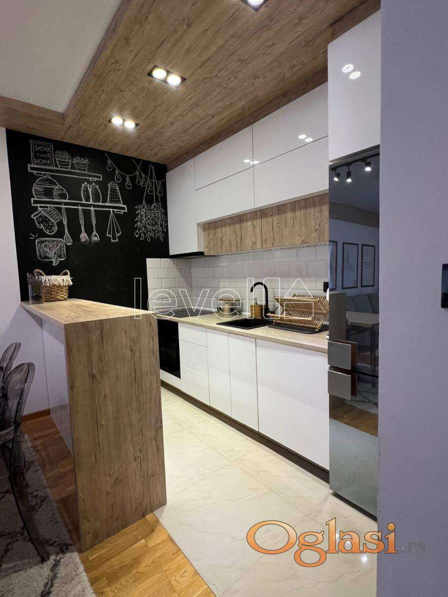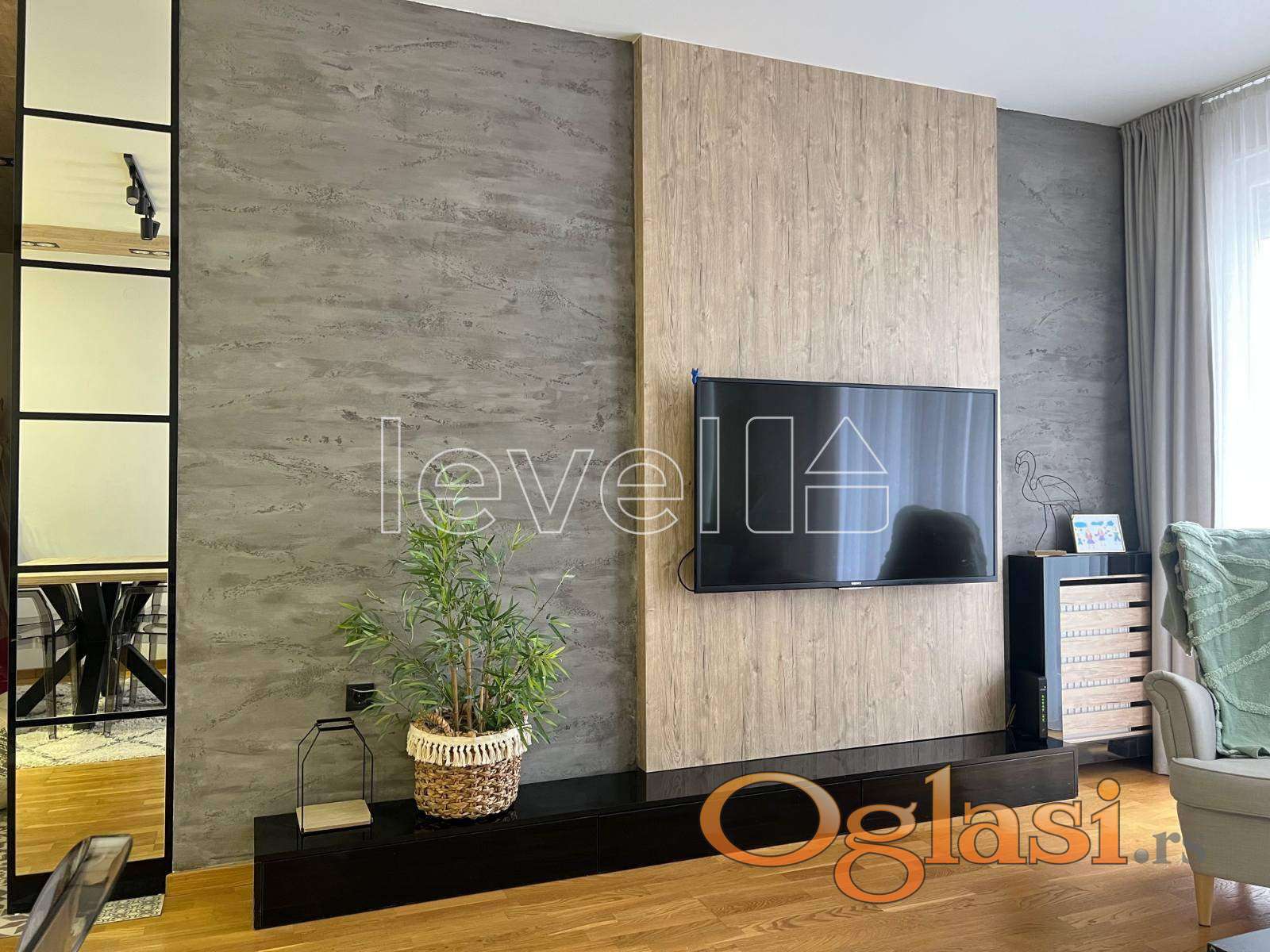 LEVEL PROPERTY, agencija za nekretnine Vam predstavlja izuzetan, trosoban stan u Sajam kompleksu. Nalazi se na drugom spratu, a sastoji se iz dnevnog boravka sa kuhinjom i trpezarijom, dve spavaće sobe, hodnika, kupatila i terase. Moderno i kvalitetno je opremljen, namštaj je rađen po meri i prodaje se u viđenom stanju. Vlasnička dokumentacija je uredna i postoji mogućnost kupovine putem stambenog kredita. Takođe, postoji mogućnost kupovine parking mesta.