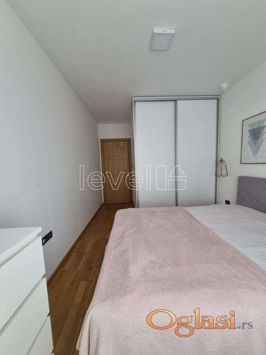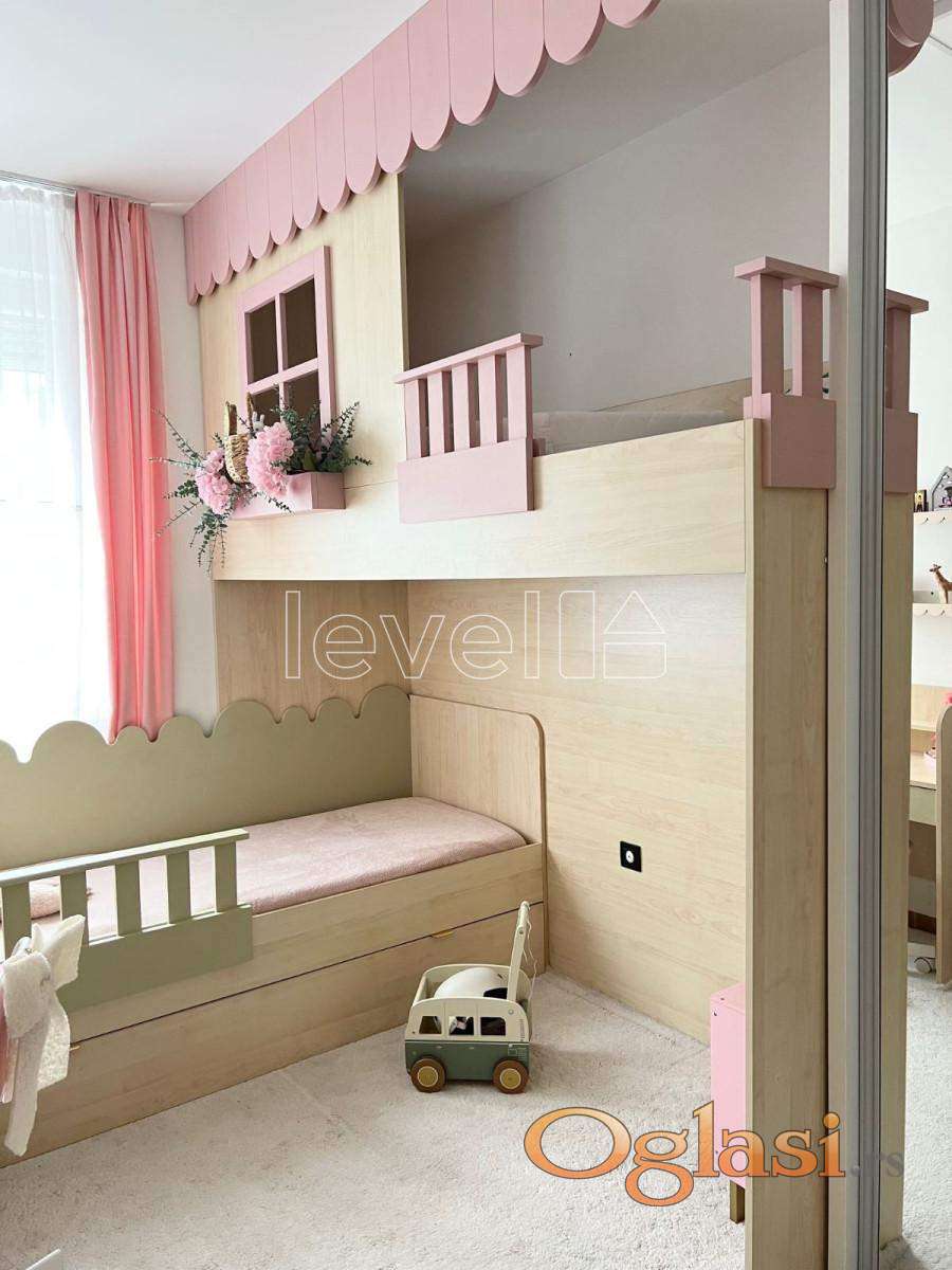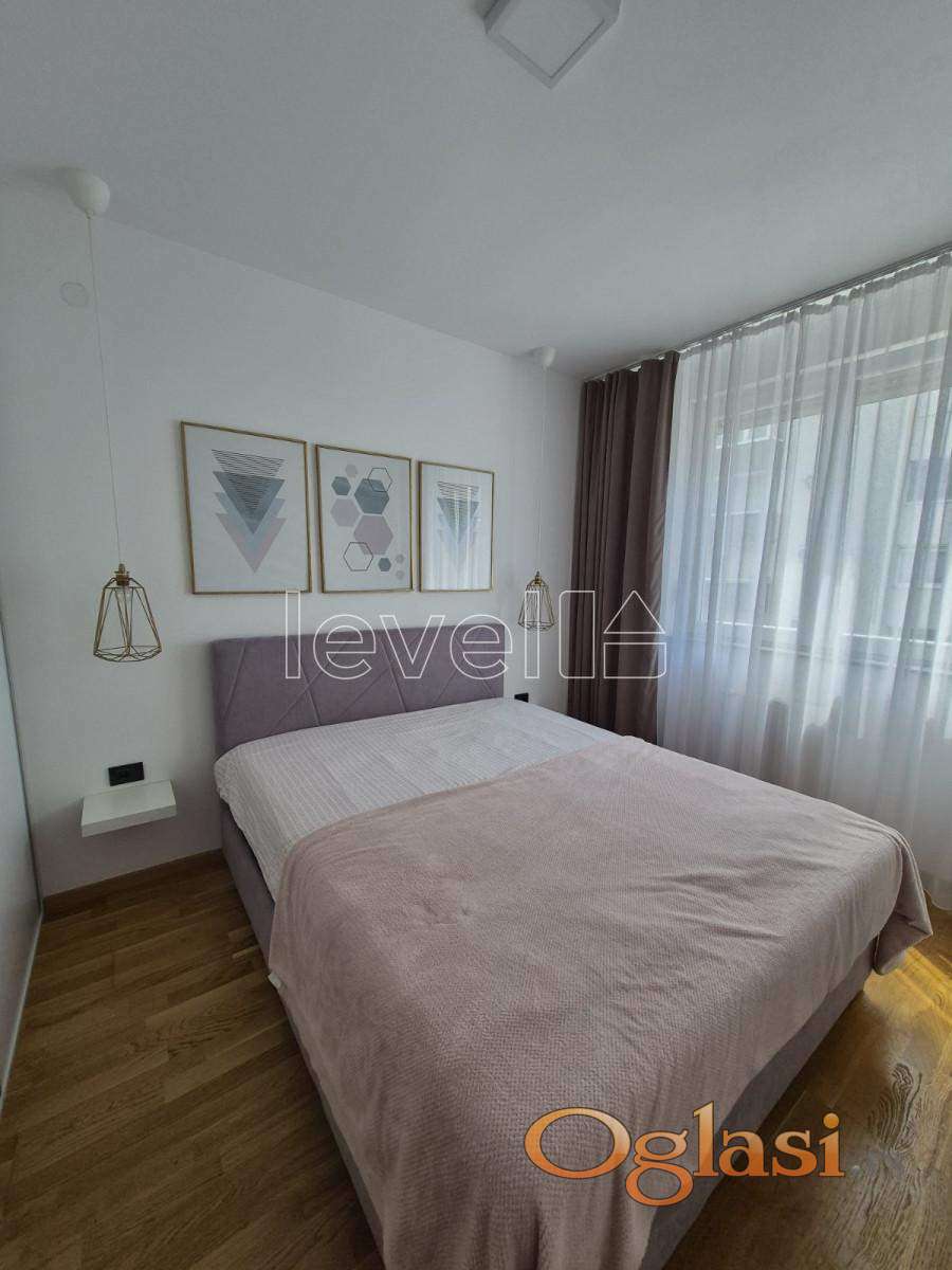 LEVEL PROPERTY, agencija za nekretnine Vam predstavlja izuzetan, trosoban stan u Sajam kompleksu. Nalazi se na drugom spratu, a sastoji se iz dnevnog boravka sa kuhinjom i trpezarijom, dve spavaće sobe, hodnika, kupatila i terase. Moderno i kvalitetno je opremljen, namštaj je rađen po meri i prodaje se u viđenom stanju. Vlasnička dokumentacija je uredna i postoji mogućnost kupovine putem stambenog kredita. Takođe, postoji mogućnost kupovine parking mesta.