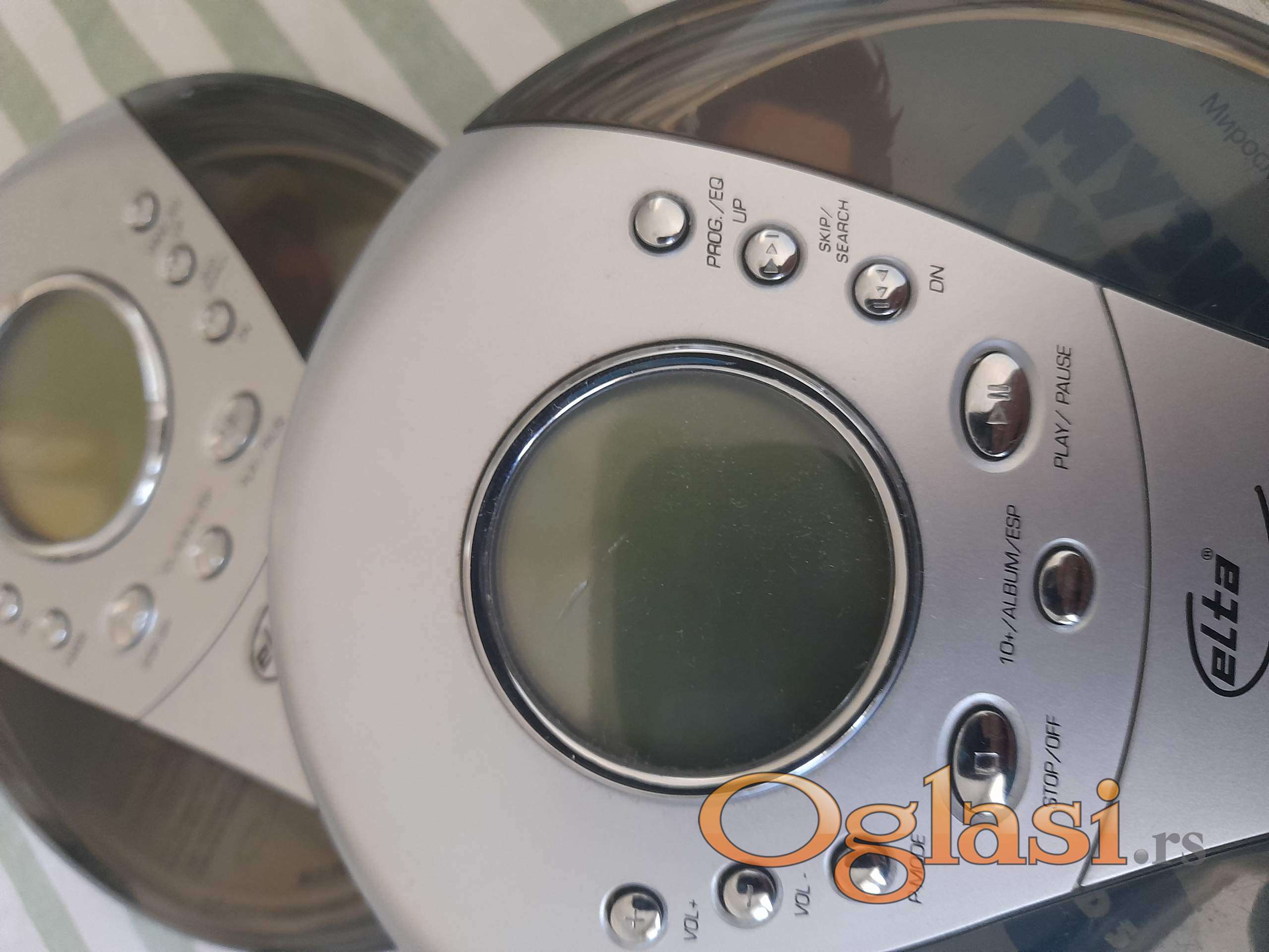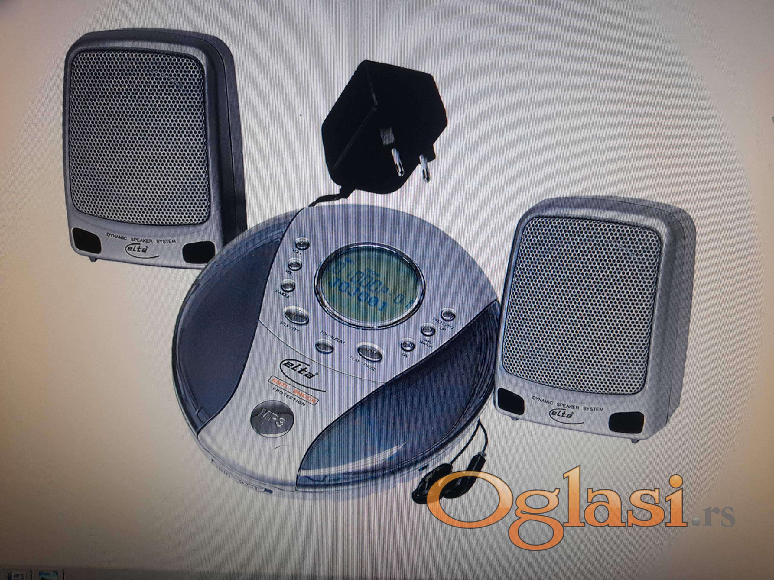 Diskmen sa dva zvučnika, slušalicama, originalnim napajanjem za struju, torbicom.