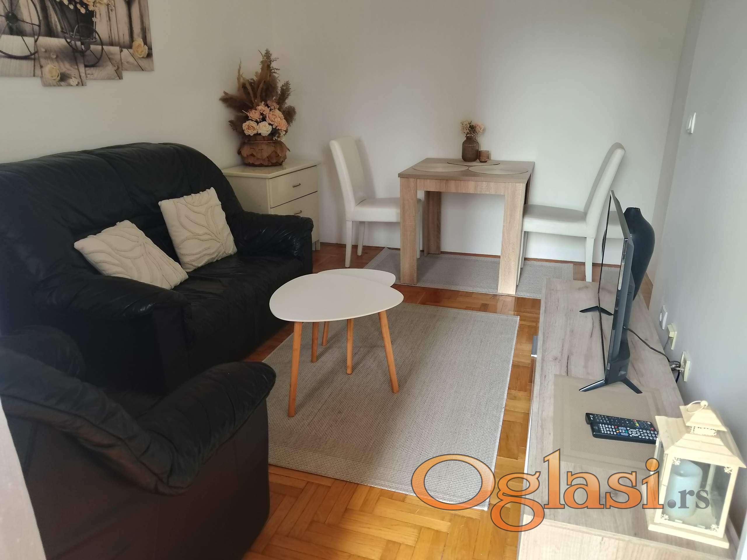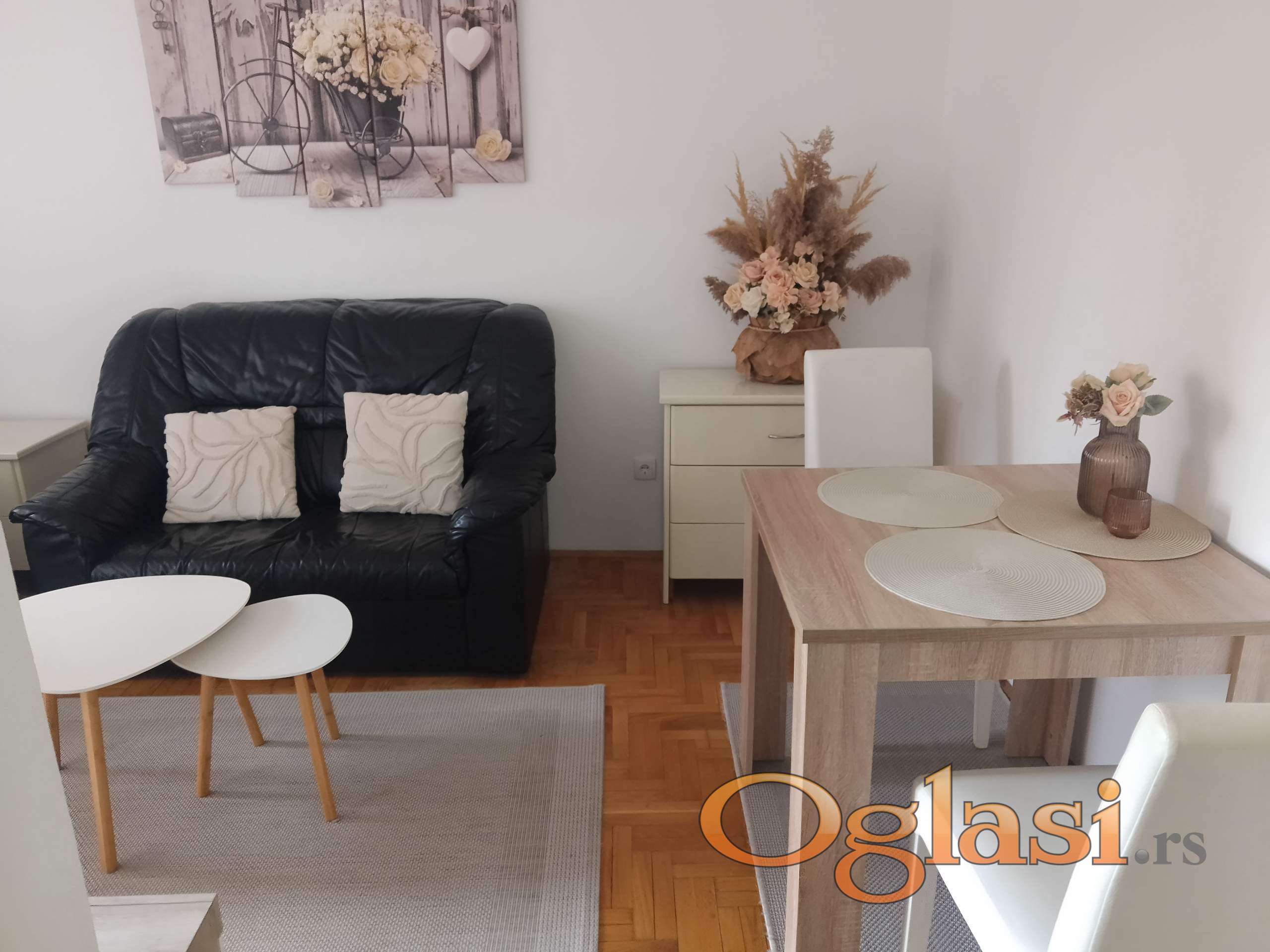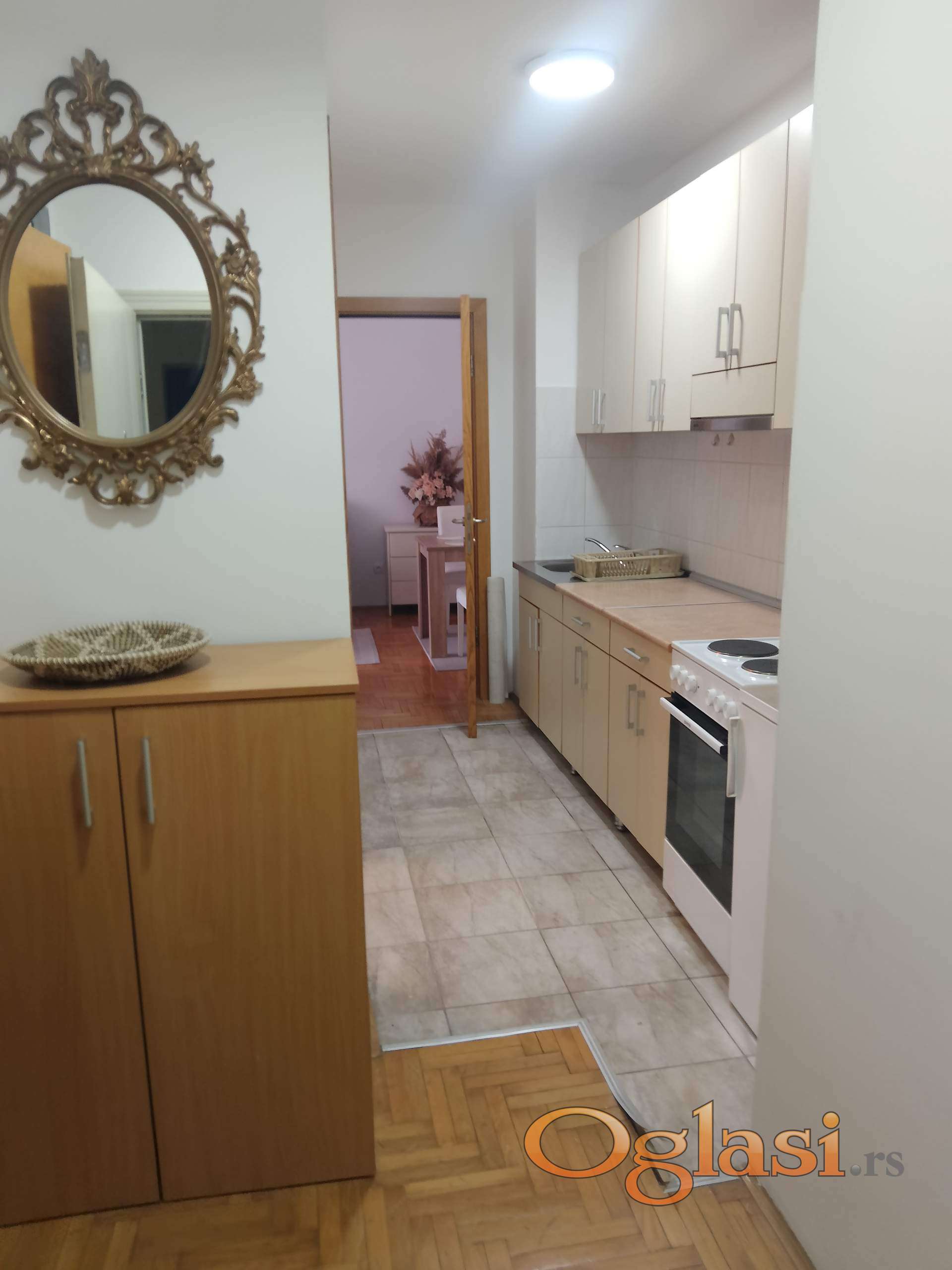 Lepo namešten stan,dvorišni orijentisan,lep raspored hodnik,kuhinja,dnevni boravak iz kojeg se izlazi na terasu, ostava,soba,dozvoljeni su manji kućni ljubimci, useljiv odmah,cena 350 e+ depozit+ ag.provizija.