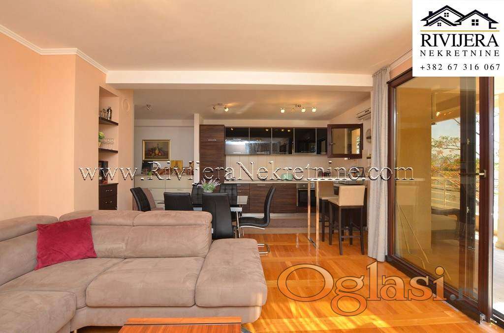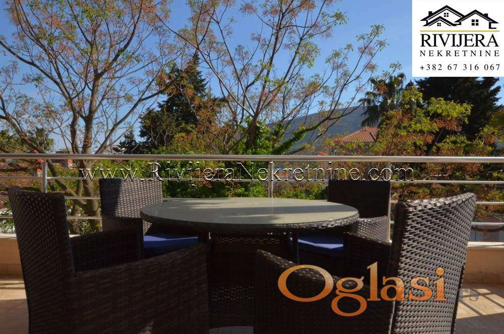 Dvosoban opremljen stan na obali mora Djenovic Boka Kotorska. Povrsine 98m2, novogradnja, stan kompletno opremljen u dobrom stanju, osuncan. Raspored prostorija: ulazni hodnik, dvije spavace sobe, dva kupatila, tri terasa, dnevna soba sa kuhinjom. Udaljenost od mora, plaze 70 metara. Atraktivna lokacija za zivot i odmor. Udaljenost od H.Novog 8 km, aerodroma Tivat 16 km. Cijena: 365.000€