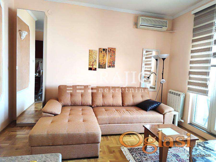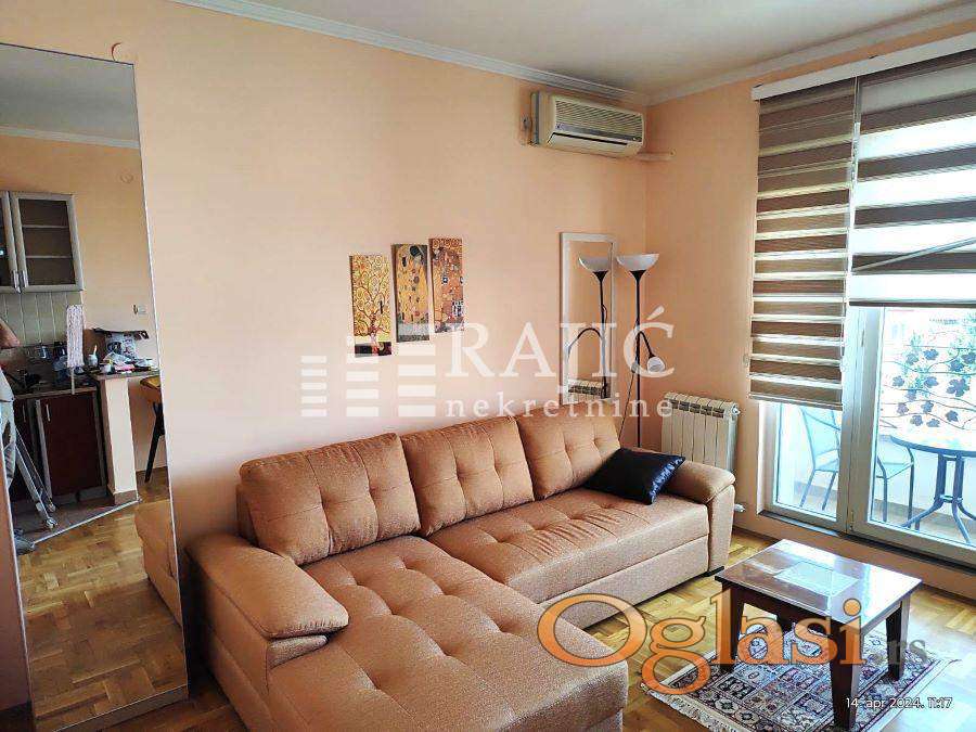 Dnevni boravak ima izlaz na terasu sa koje se pruža divan pogled na panoramu grada. Kupatilo je renovirano, potpuno opremljeno.