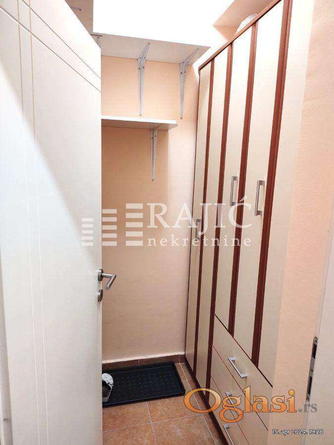 Prostor ima funkcionalan raspored, iz hodnika se ulazi levo u prostoriju/ degažman za garderobu (opremljen plakarima i fiokarima), pravo je spavaća soba sa francuskim ležajem, levo dnevni boravak spojen sa kuhinjako- trpezarijskim delom.