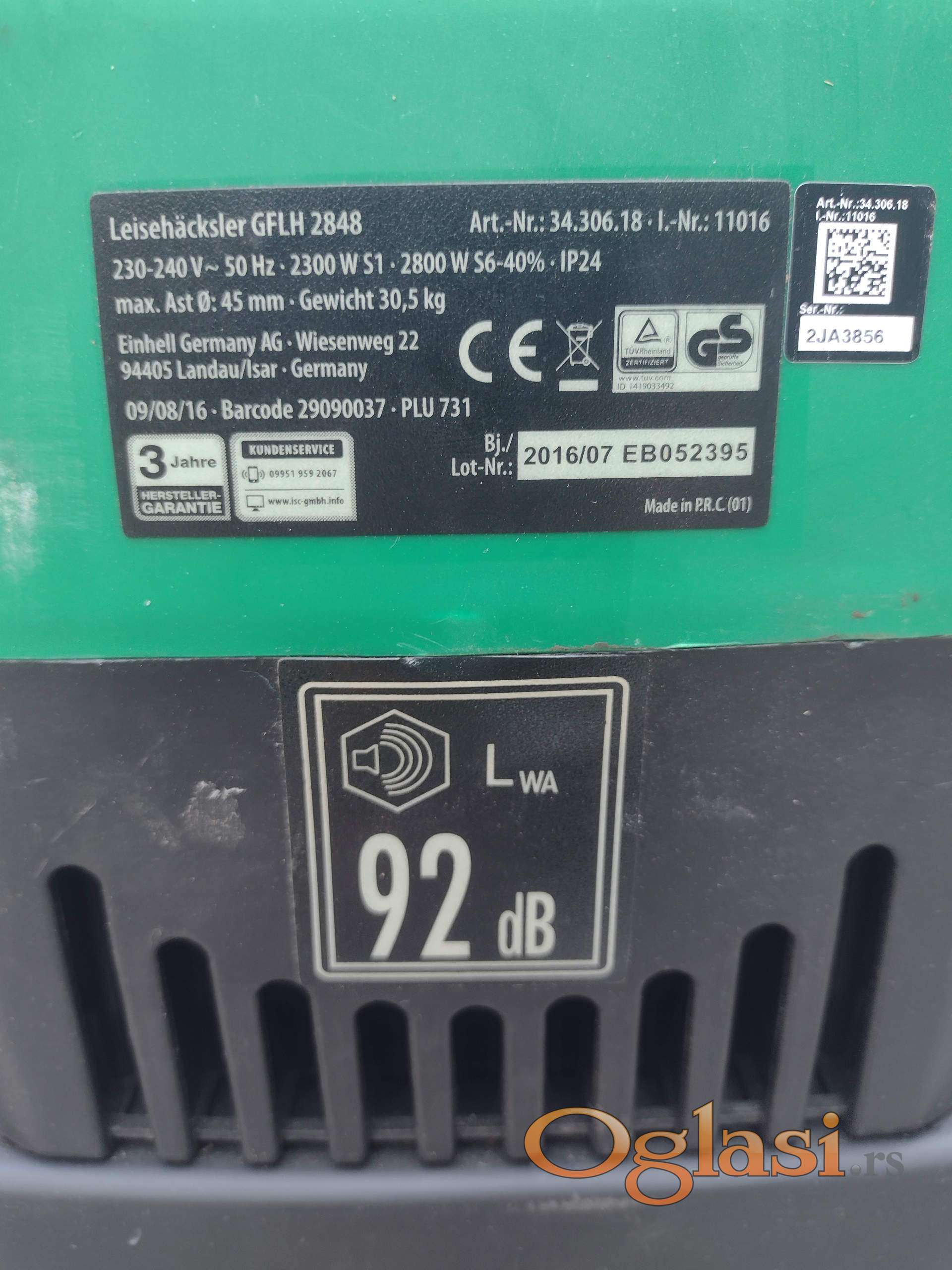Sečka (Drobilica/ Seckalica) za grane donešena iz Nemačke