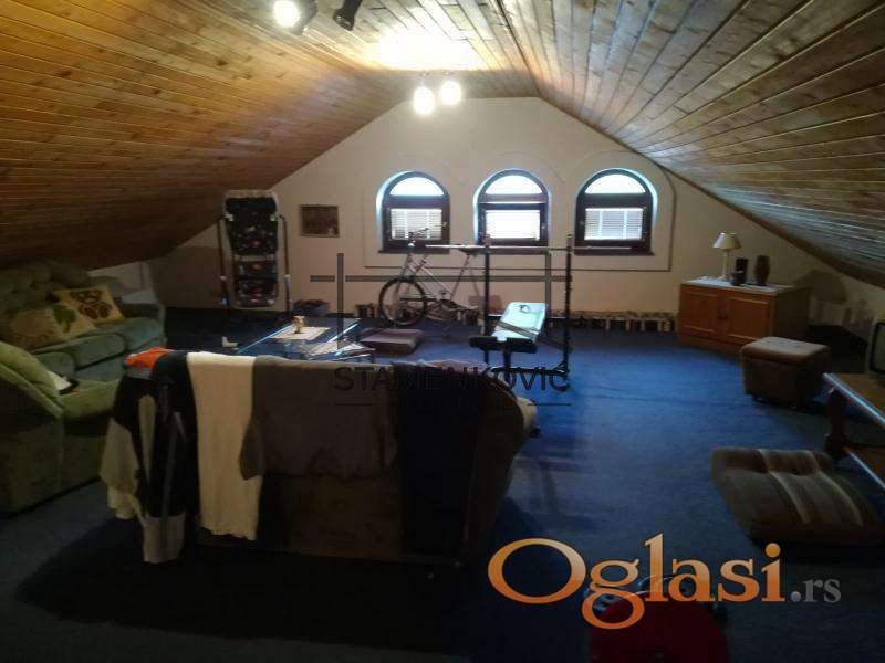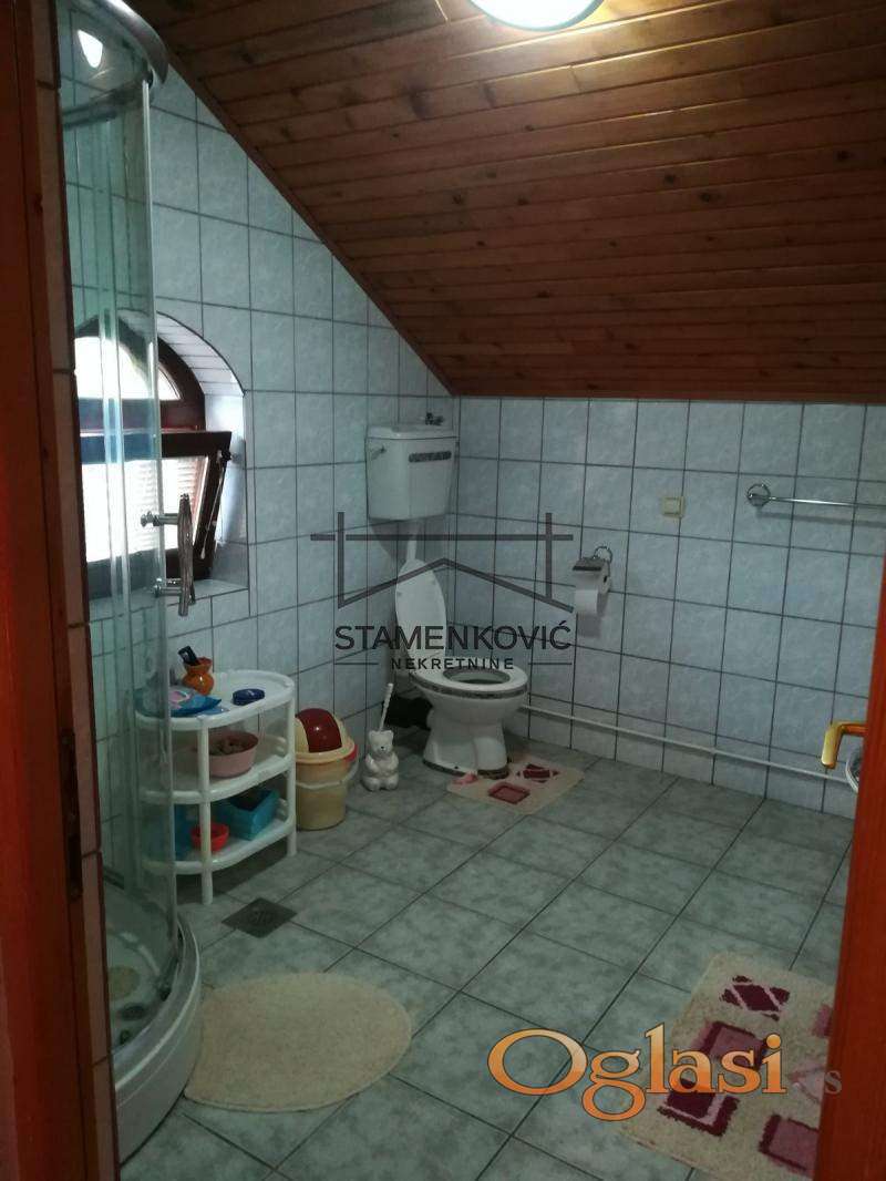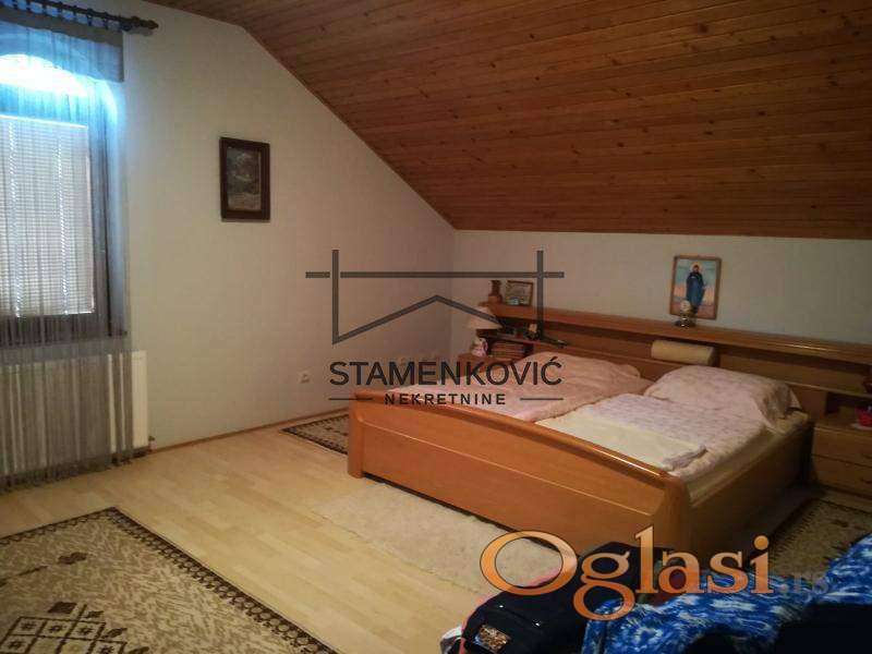 Na prodaju porodična kuća u prelepom, mirnom delu grada, a u blizini svega što vam je potrebno za život. Prizemlje kuće čine hodnik, velika dnevna soba koja ima preko 50m2, trpezarije, kuhinje, kupatilo, WC, vešernica sa mokrim čvorom, ostava i garaža. Potkrovlje kuće čine hodnik, pet spavaćih soba i veliko kupatilo. U dvorištu kuće se nalazi i pomoćni objekat kao zasebna stambena jedinica od 38m2. Kuća je lepo održavana, dvorište je ravno i prostrano. Ukoliko želite da živite u komotnoj kući i imate sopstveni mir, a da ste opet u gradu, ovo je idealna prilika za Vas! ************ Ukoliko je ova nekretnina na nekom portalu oglašena sa nižom cenom ,koju je prethodno odobrio vlasnik nekretnine , ta niža cena važi i u našoj ponudi........................STAMENKOVIĆ NEKRETNINE -NOVI SAD , Upisan U Reg. Pos. Broj 1170