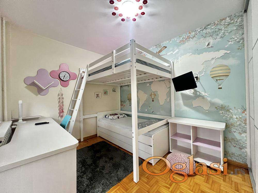 Stan je veoma lepo osvetljen tokom dana, što dodatno doprinosi prijatnom ambijentu. Postoji mogućnost dogovora oko iznošenja dela nameštaja iz dečije sobe, u skladu sa potrebama zakupca.