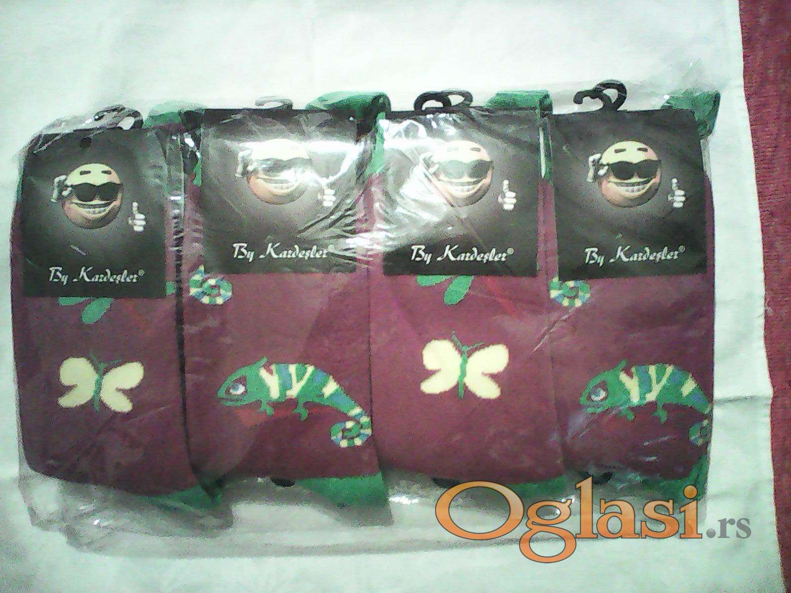 Vrlo kvalitetne ženske kraće sportske čarape. Čisto bele su domaće, ostale proizvedene u Turskoj. Jedan paket 1400 din. U paketu su standardno 12 pari čarapa. Na više, moguć popust. Troškove dostave plaća kupac. Moguće slanje kurirskim službama, kao i dogovor o ličnom preuzimanju u Aleksincu. Ako vam se odmah ne javim na telefon, pošaljite mi SMS, pa ću vas pozvati čim budem mogao.Tel. 061 178 0 225.