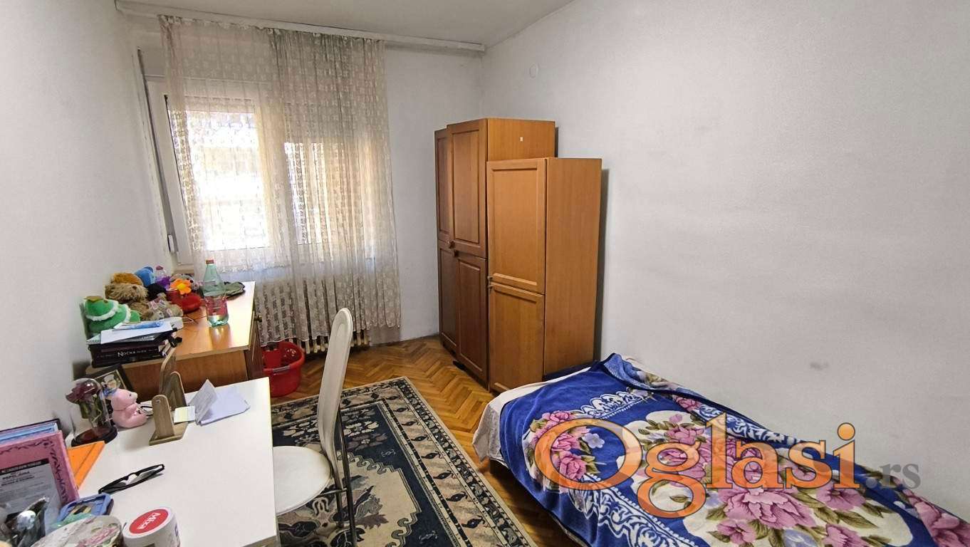 Izdaje se trosoban stan u neposrednoj blizini Kuće za venčanje. Udaljen je 5 minuta od glavnog gradskog šetališta i 2minuta od Palilulske pijace. Nalazi se na prvom spratu zgrade koja ima lift i koja je priključena na centralno grejanje. Površina stana je 81m2. Sastoji se od ulaznog predsoblja, toaleta, komforne dnevne sobe sa terasom, izdvojene kuhinje sa trpezarijom, degažmana iz koga se ulazi u dve spavaće sobe i kupatilo. Stan je odlično osvetljen, promenjena mu je stolarija i postavljena pvc sa roletnama. Stan je opremljen svim uredjajima za normalno stanovanje. Obavezan depozit u visini kirije. Ako trežite pravi porodičan stan na izuzetno lepom mestu onda je ovo nekretnina za vas. Za više informacija pozovite. Agencija Kvart nekretnine upisana je u registar posrednika pod brojem 886.