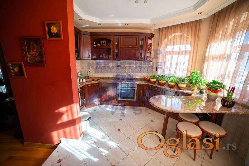 EKSKLUZIVNO U PONUDI! Luksuzna kuća na prestižnoj lokaciji! Između Bulevara Oslobođenja i Novosadskog sajma,izdvojena od buke a ipak u neposrednoj blizini škola,vrtića,Futoškog parka i samog centra grada. Objekat se prostire na placu od 732m2,spratnosti SU+P+1+PK,u sklopu kuće je unutrašnji bazen u dimenzijama 5x10 sa fantastičnim pogledom na predivno uređeno dvorište. Isprojektovana perfektno, da u svakom segmentu odiše komforom, počev od dnevnog boravka i trpezarijskog dela sa kaminom, preko spavaćih soba, teretane, sobe u kojoj možete gledati omiljene filmove sa prijateljima... Prednost je, takođe što masivnim stepeništem možete zasebno imati tri stambene jedinice pored kompaktnosti koju ova kuća ima kao celina. Pažljivo birani materijali, mermer, granitna keramika, vrhuski parket i stolarija su definitivno ono što čini ovu kuću luksuznom. JEDINSTVENA NA TRŽIŠTU! Za više informacija pozovite šifra 568048, b130