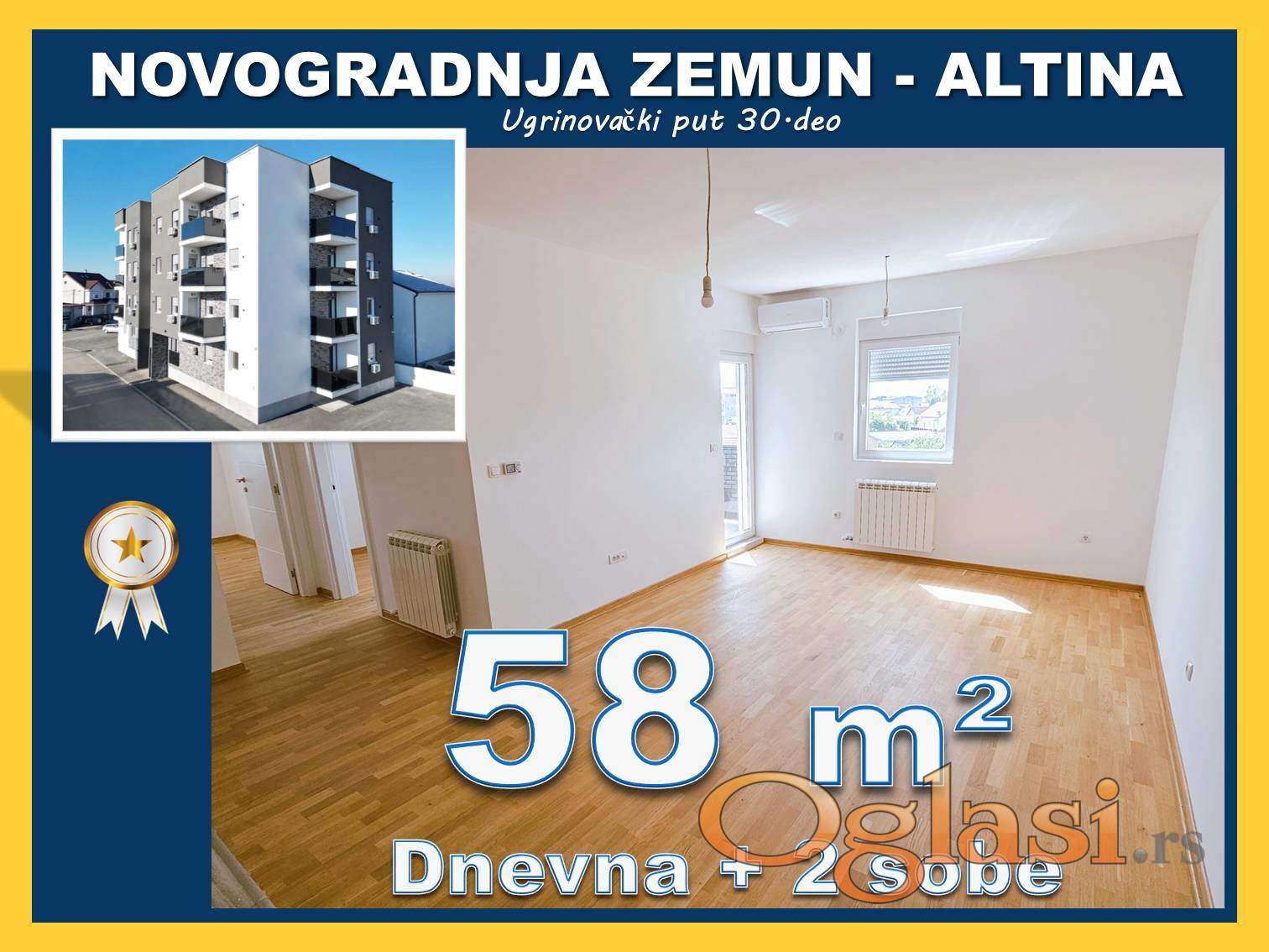 Altina, Zemun – nov dvoiposoban stan 58 m², useljiv odmah, etažno grejanje, parking