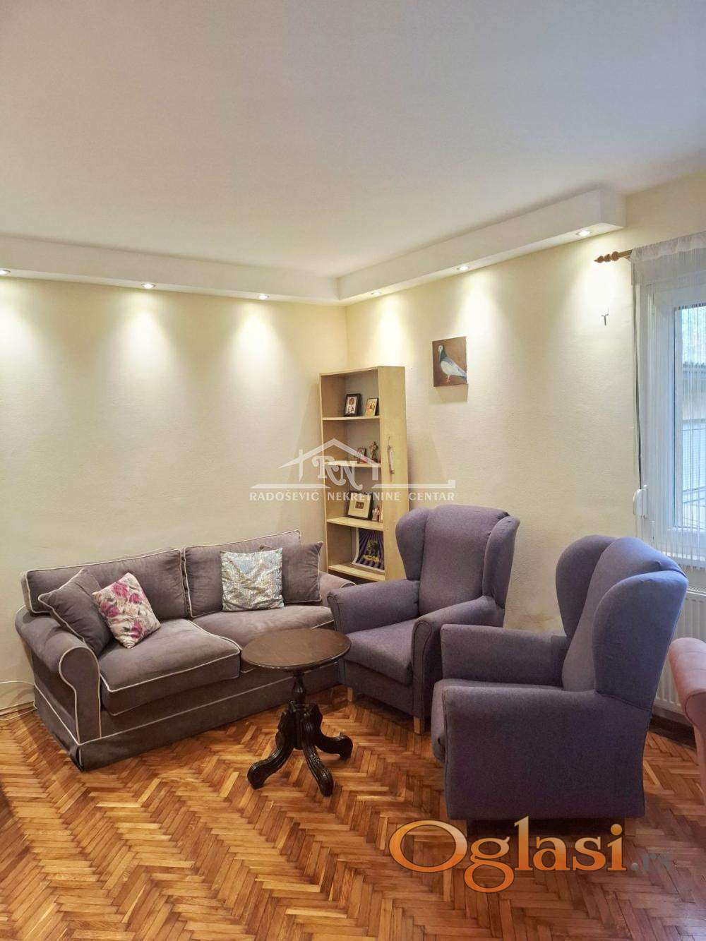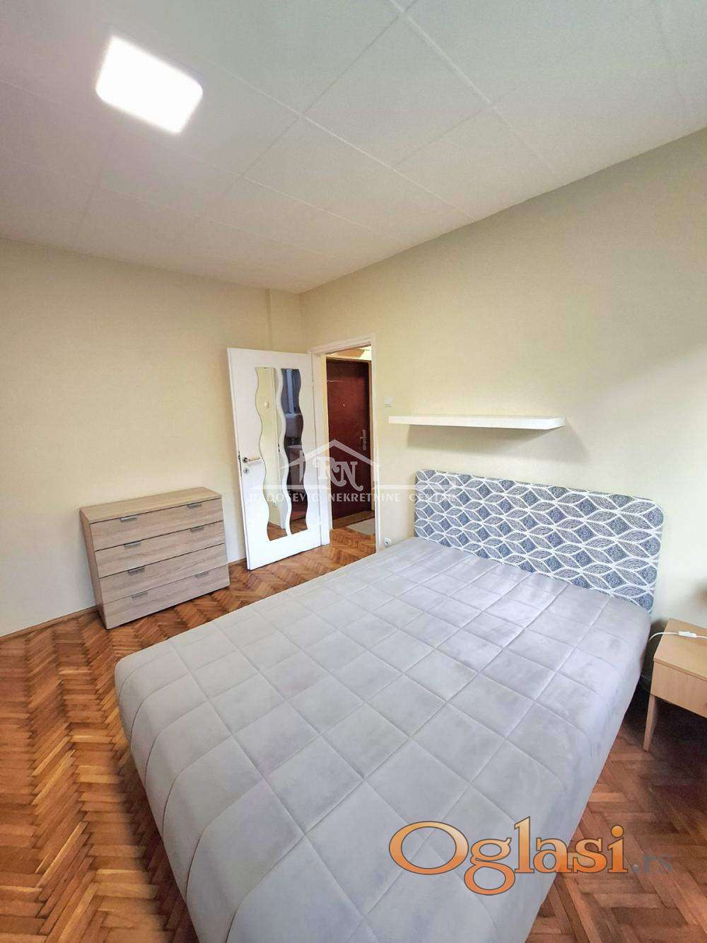 Kompletno namešten, odmah useljiv, ima etažno grejanje na struju, klimu, PVC stolariju.