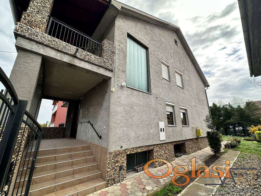 Suteren je maksimalno uređen, popločan i u funkciji kancelarijskog prostora, letnje kuhinje i velike prostorije za odlaganje, sa direktnom vezom ka stambenom delu kuće.