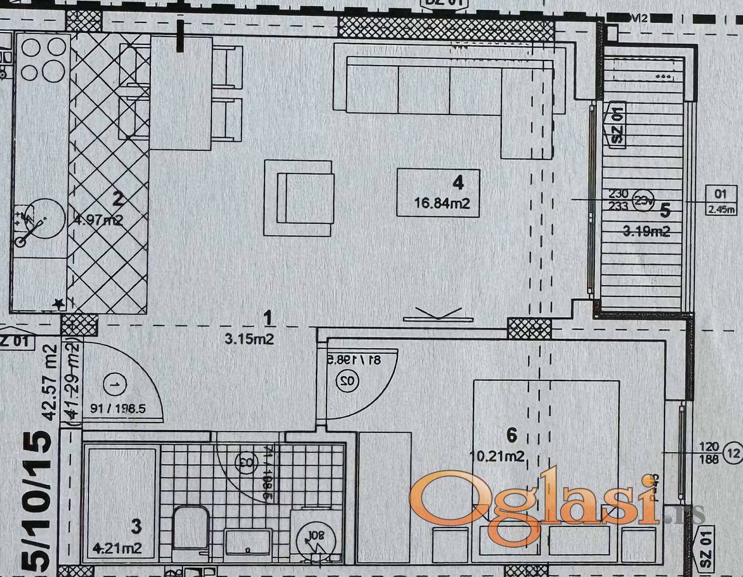 Na prodaju stan od bruto 42.57m2, neto 41.29m2, po strukturi jednoisposoban sa modernim open-space konceptom, na 1. spratu stambeno-poslovnog objekta.