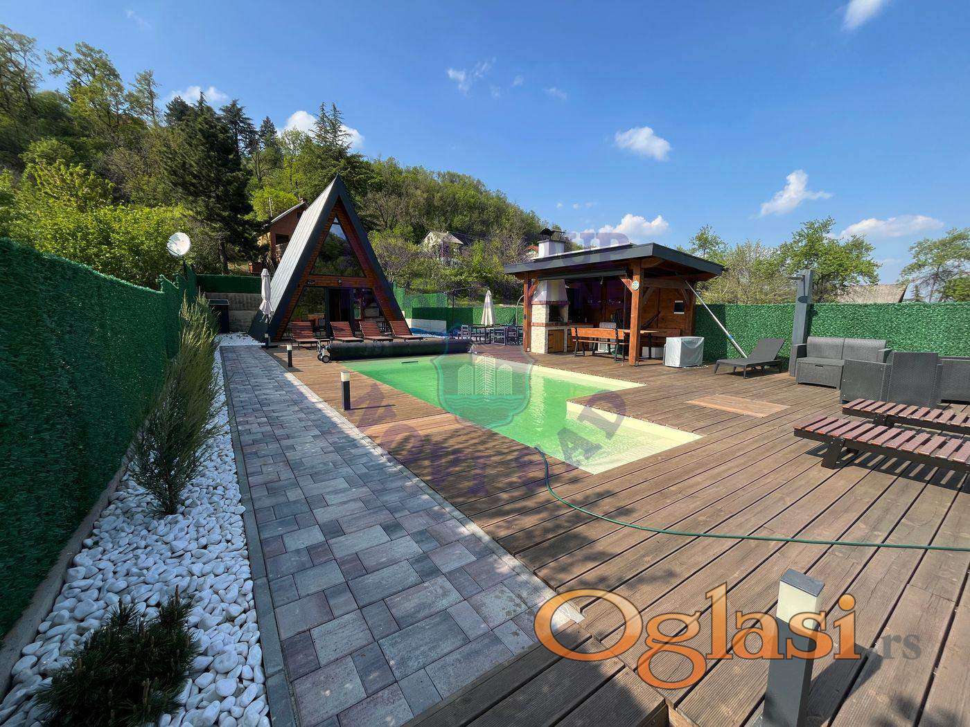 Predstavljamo Vam oazu mira sa bazenom u srcu prirode. Raj za dušu i odlična prilika za zaradu. Ušuškana vikendica među prelepim zelenilom, daleko od gradske buke, a opet dovoljno blizu svega što Vam treba. Smeštena je na idealnoj lokaciji u prirodnom ambijentu okružena mirom i tišinom. Savršena za beg iz grada, ali i kao profitabilna investicija za izdavanje. Gosti je obožavaju i vraćaju joj se iznova i iznova. Svako godišnje doba ovde ima svoju magiju. Ako tražite nešto posebno, nešto što vredi i može da donosi zadovoljstvo i zaradu onda je ovo prava prilika za Vas. Kontaktirajtirajte nas što pre za više informacija!
