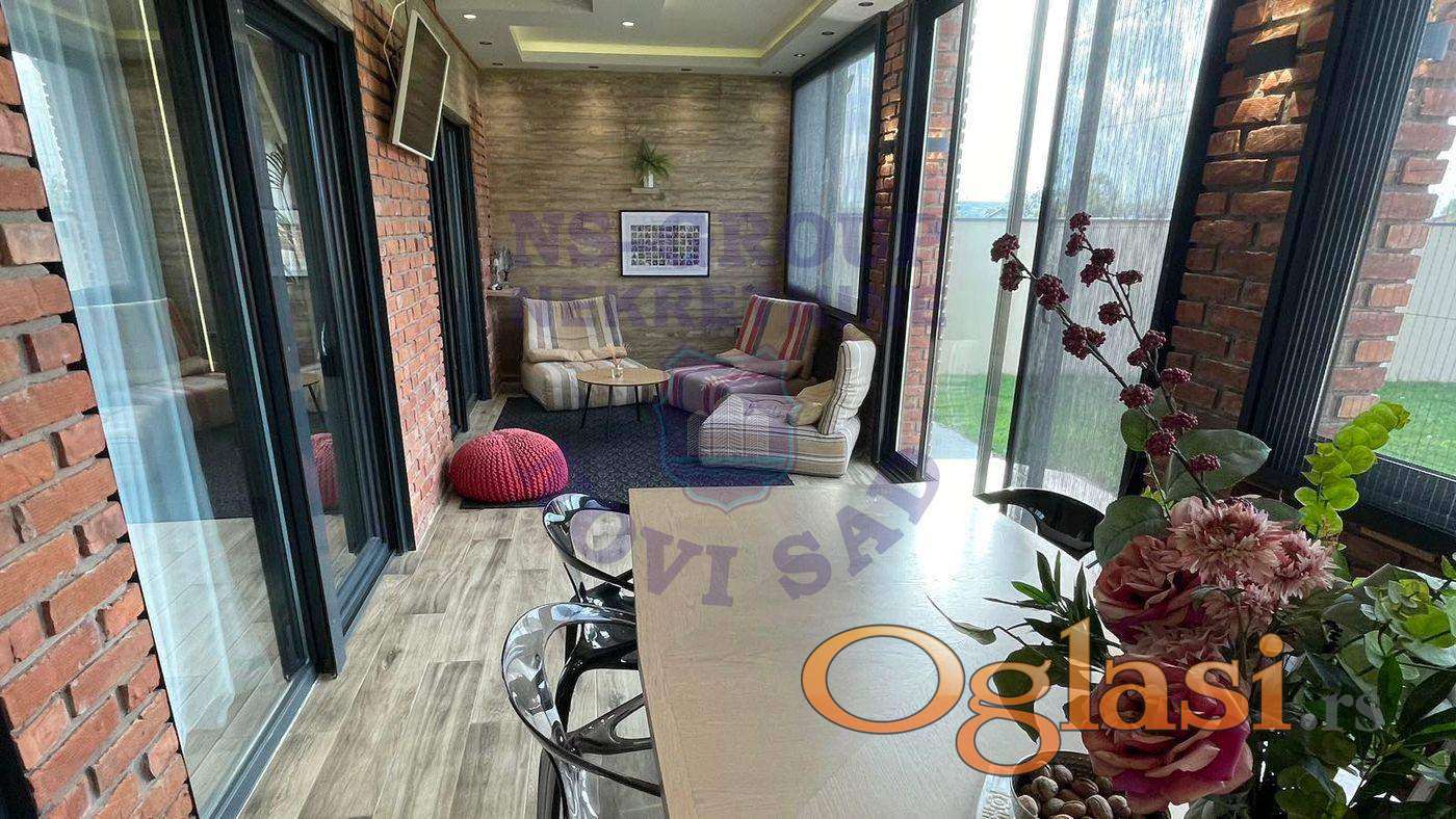 Ova kuća predstavlja savršen spoj elegancije, komfora i funkcionalnosti, idealna za miran i kvalitetan porodični život. Prostrani dnevni boravak odiše toplinom i stilom opremljen luksuznim nameštajem, povezan sa modernom trpezarijom i potpuno opremljenom kuhinjom vrhunskog kvaliteta. Posebnu vrednost ovoj nekretnini daje sistem podnog grejanja na toplotne pumpe, koji obezbeđuje energetsku efikasnost tokom cele godine. Dodatno, ugrađeni solarni paneli doprinose uštedi energije i čine kuću ekološki održivom. Spavaće sobe su prostrane, svetle i uređene sa posebnom pažnjom, pružajući privatnost i mir svakom članu porodice. Kupatila su moderno dizajnirana, sa kvalitetnim sanitarijama i elegantnim detaljima. LUX LUX LUX