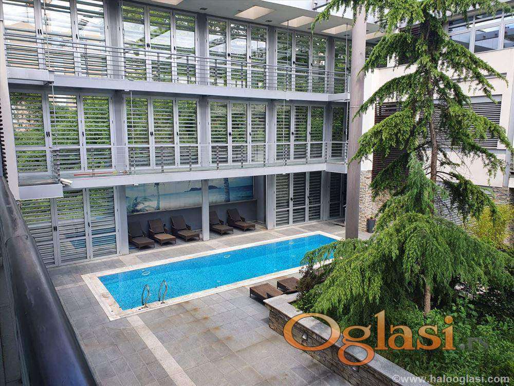 Izdaje se stan u luksuznom kompleksu u ulici Velisava Vulovića koji se sastoji iz dve zgrade, a u svakoj zgradi su ukupno po tri stana.