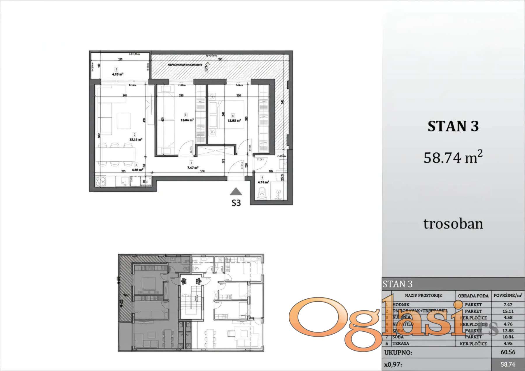 | Sobnost: | Trosoban |