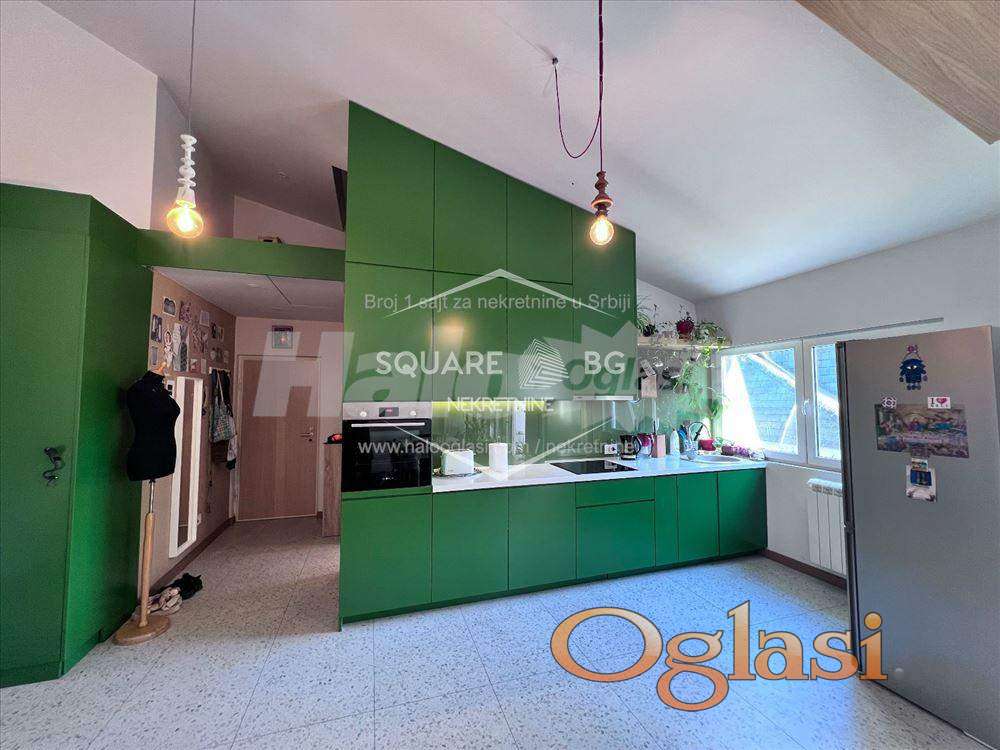 I am renting an apartment in Dorćol. Open plan living area, hallway, bathroom with tub, living room, dining area and kitchen together, separate bedroom and terrace, storage in the attic. Minimum rental 6 months. Possible parking space in K District for an additional fee of €100. The apartment is in the attic, newly renovated, facing two directions with a view of Kalemegdan Park. Extremely bright and warm. Available from May 1st. Agencijska provizija 50%
