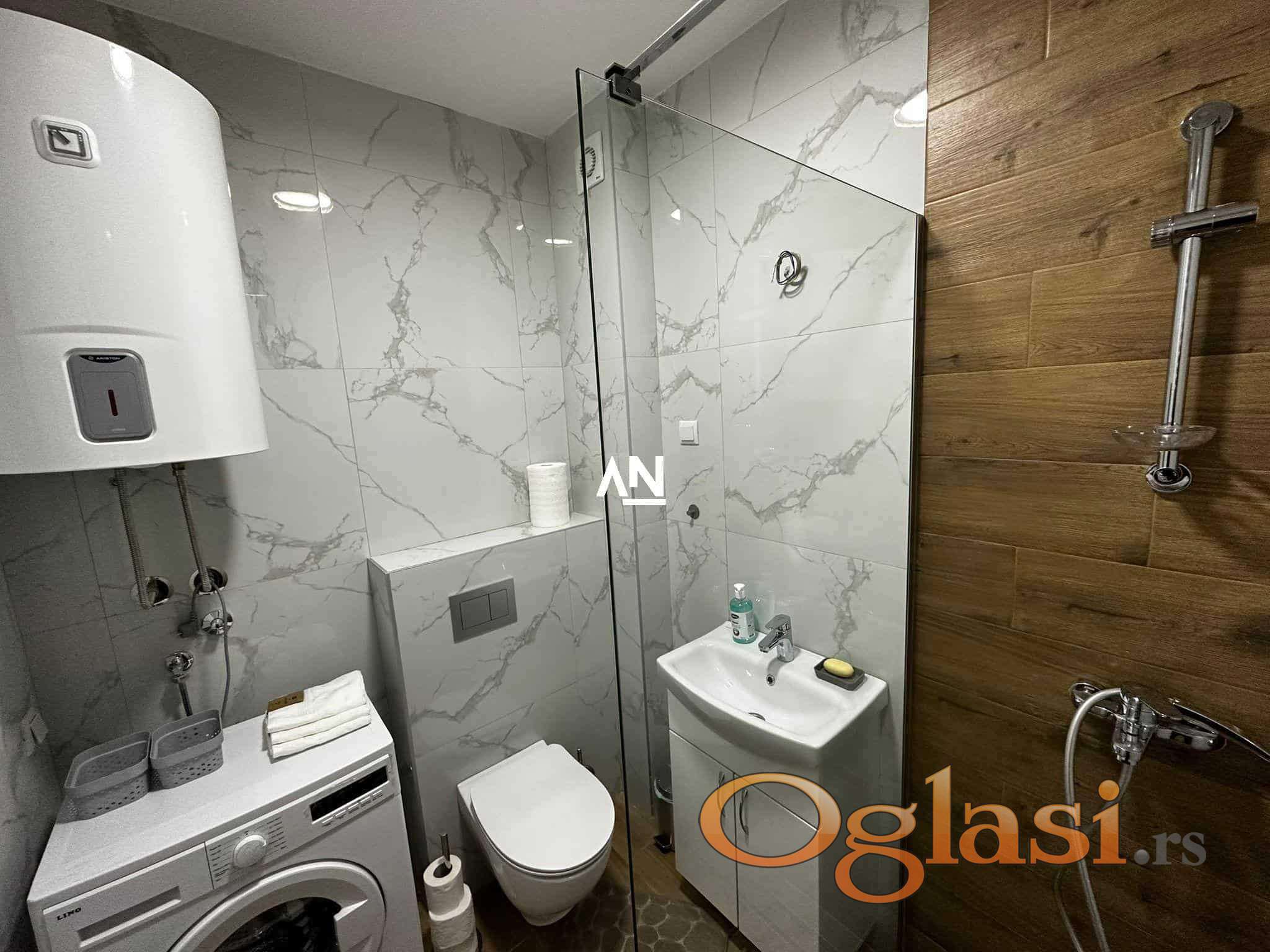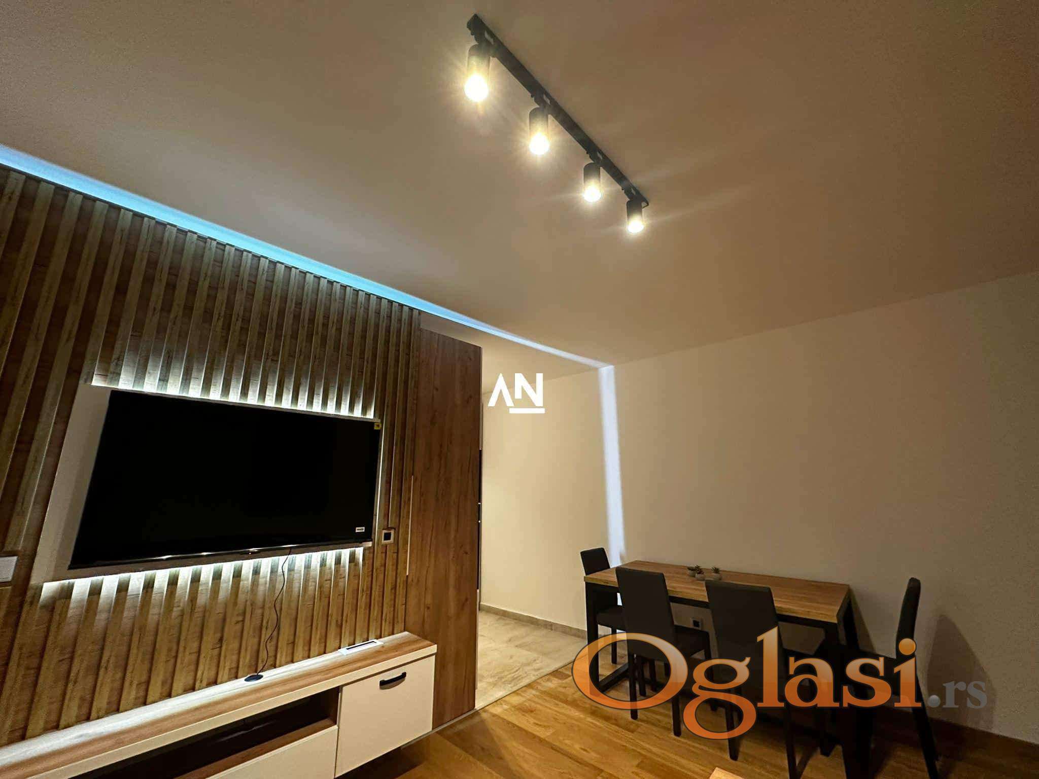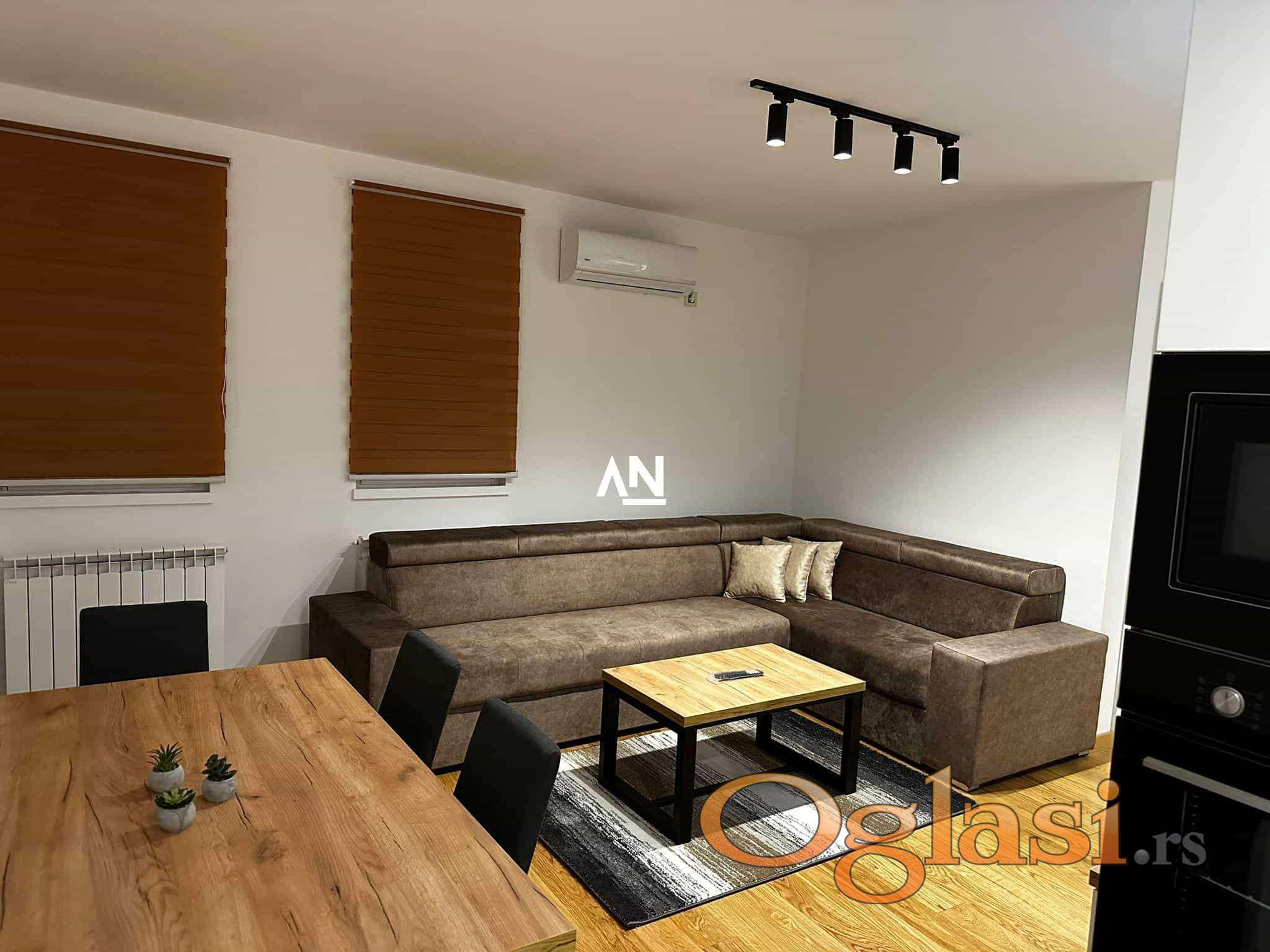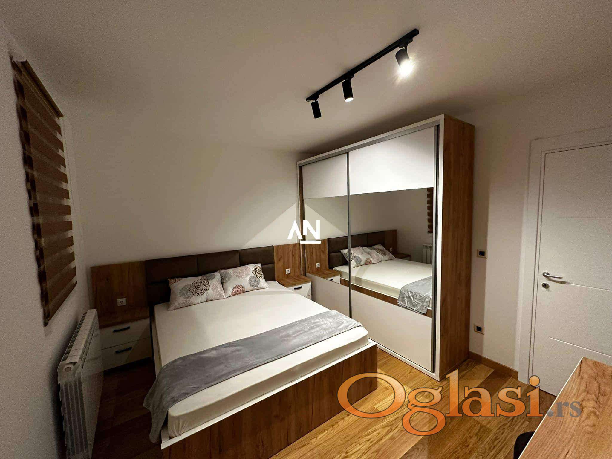 Luksuzan, kompletno namešten stan u novogradnji iz 2024. godine, projektovan po modernim standardima stanovanja. Površine 45 m², uz prostranu terasu sa otvorenim pogledom na privatno, uređeno dvorište koje obezbeđuje mir i privatnost.