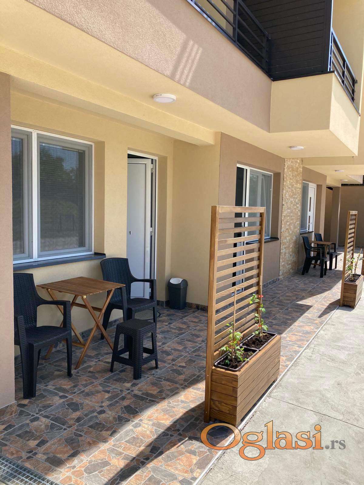 Sve jedinice imaju svoju sopstvenu terasu, kupatilo, besplatni parking, klima uredjaje, internet, peskire, posteljine, fen za kosu, peglu na upit, deciji krevetac na upit. U cenu smestaja samo nije ukljucena boravisna taksa. Kao posebne pogodnosti nudimo otplatu na vise mesecnih rata, popuste na rezervacije od 5 i vise dana, izuzetne popuste na rane rezervacije bez povracaja novca, kao i popuste na vansezonske rezervacije.