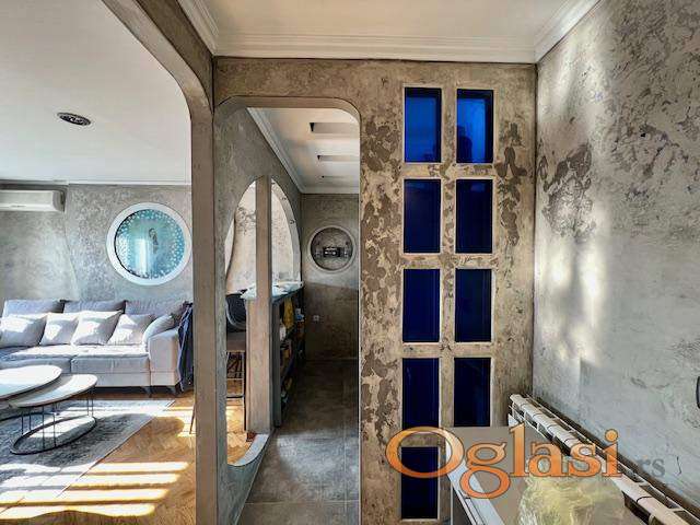 Stan se nalazi na 7. spratu u zgradi sa liftom i odlikuje se obiljem prirodne svetlosti tokom celog dana. Prostor je dobro organizovan i čine ga prijatan dnevni boravak sa trpezarijskim delom i šankom koji je povezan sa kuhinjom, udobna spavaća soba, kao i kupatilo. Enterijer je moderno uređen, sa zanimljivim dizajnerskim detaljima koji prostoru daju poseban karakter.
