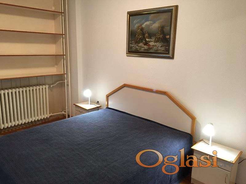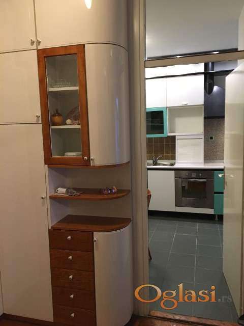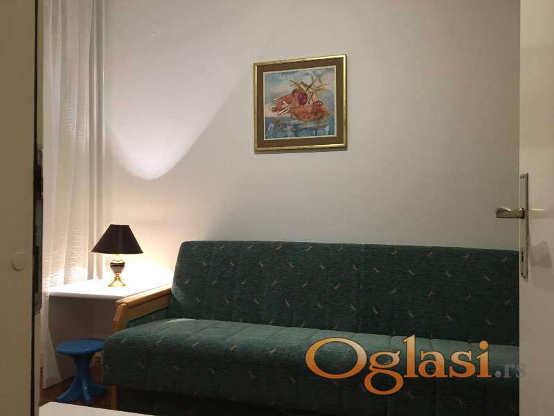 Nalazi se na drugom spratu stambene zgrade, sastoji se iz dnevnog boravka sa trpezarijoim, odvojene kuhinje, dve spavaće sobe, kupatila, toaleta i dve terase. Kompletno je renoviran, opremljen novijim nameštajem, izuzetno uredan i čist. Kućni ljubimci u stanu nisu dozvoljeni. Izdaje se na duži period, pogodan za porodicu ili odgovorne zaposlene stanare. Okolina zgrade sa dosta zelenila i dečijih igrališta, a i parking prostora.