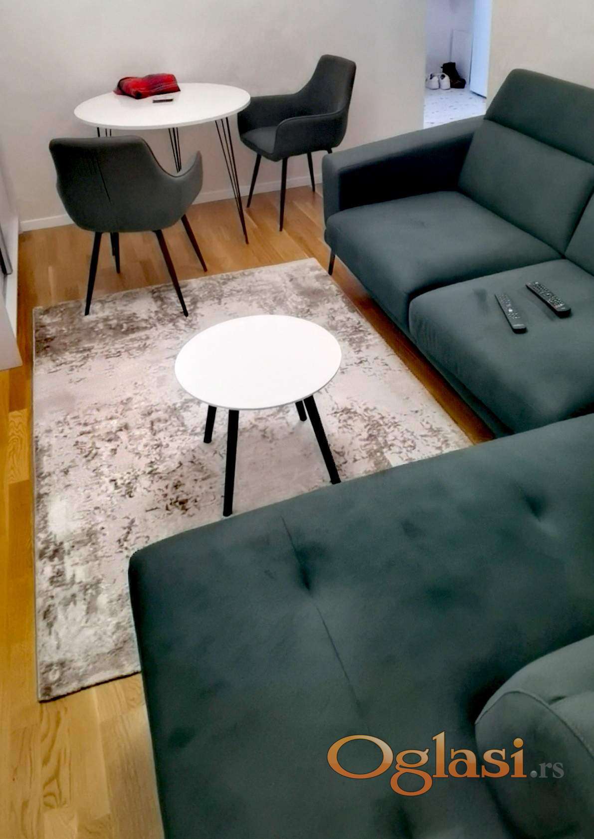 Dvosoban stan: dnevna soba, spavaca soba, kuhinja, kupatilo.