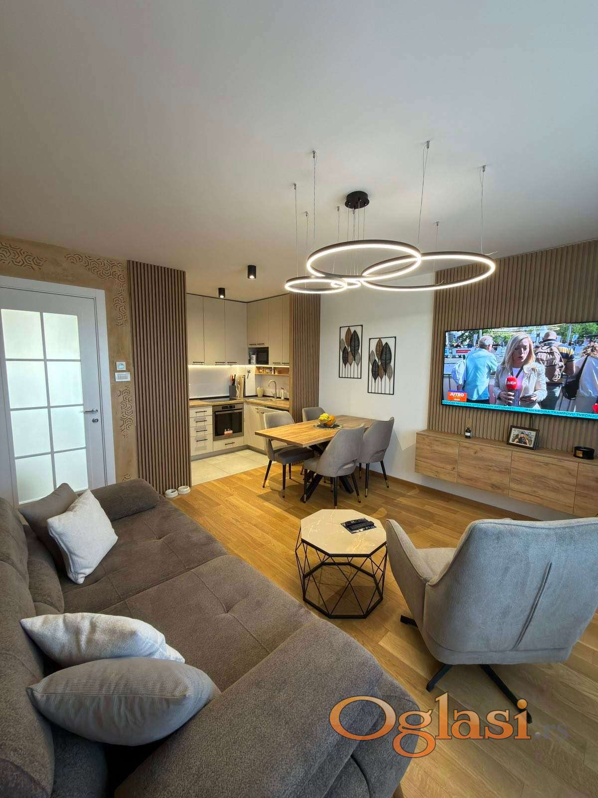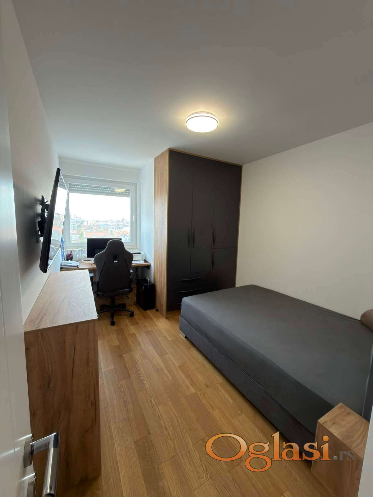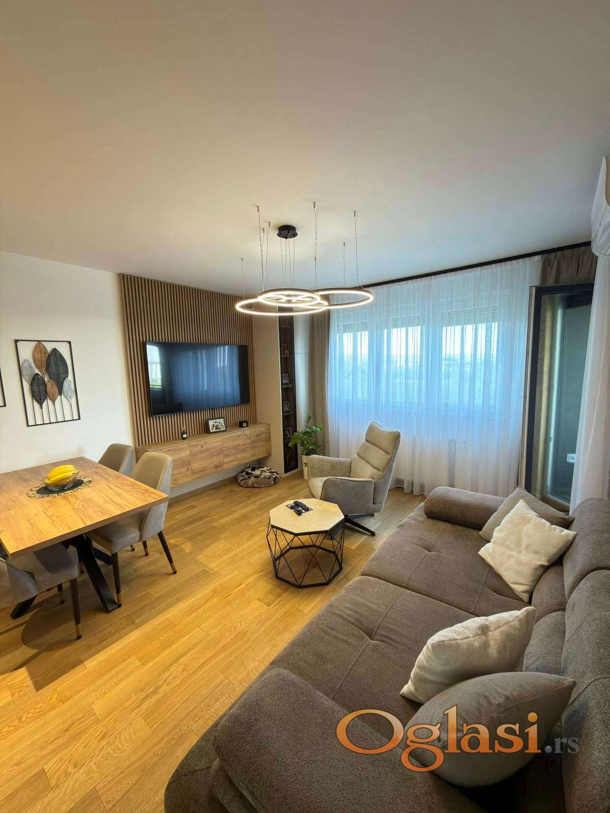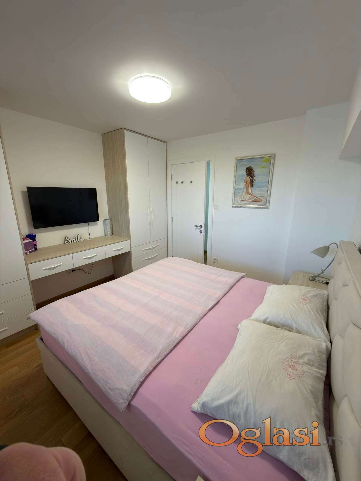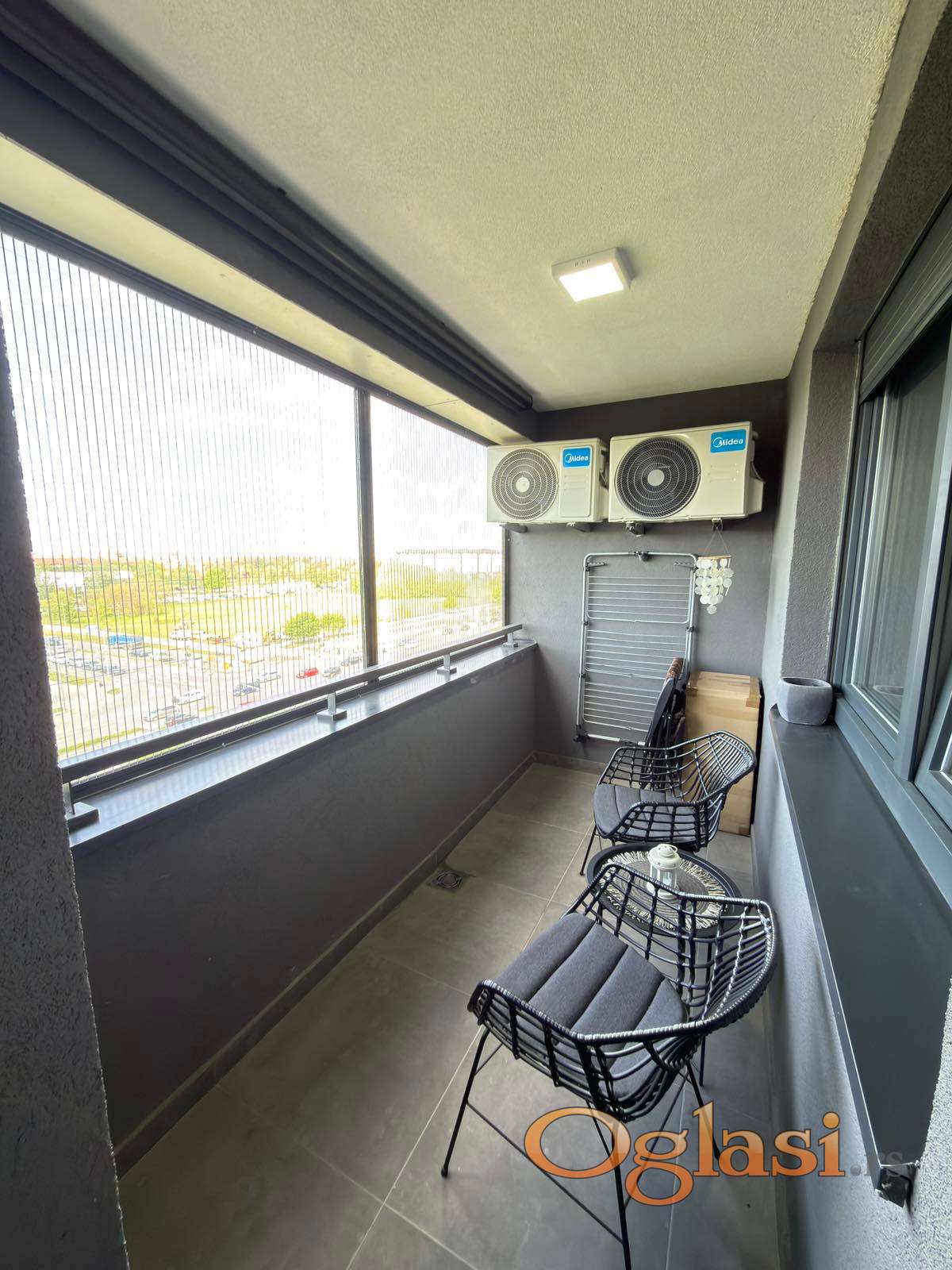 Nova zgrada. Garazno mesto je moguce kupiti po ceni od 30.000€. Stan se prodaje namesten.