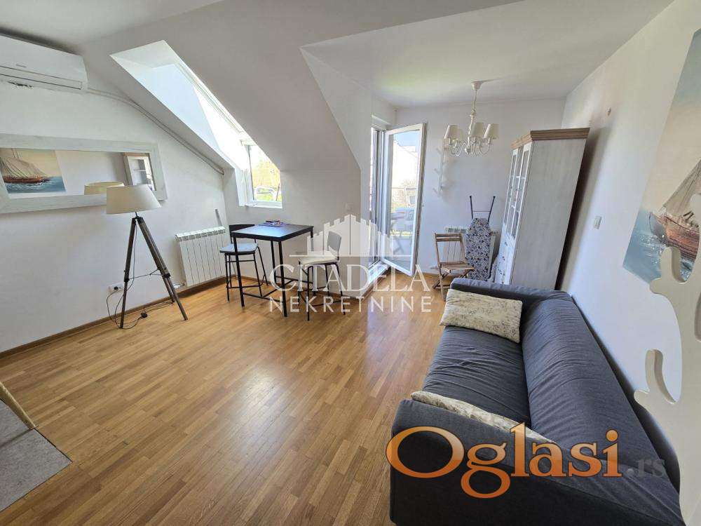 U ponudi je mali stan kompletno opremljen na u izuzetno održavanoj zgradi novije gradnje. Poseduje i galeriju od 15kvm. Svetao, sa pogledom na Hram Svetog Save. Odlično kako za investiciju, tako i za život. Useljivo odmah.