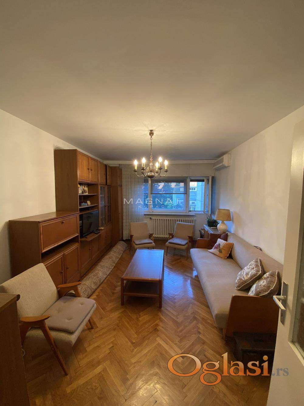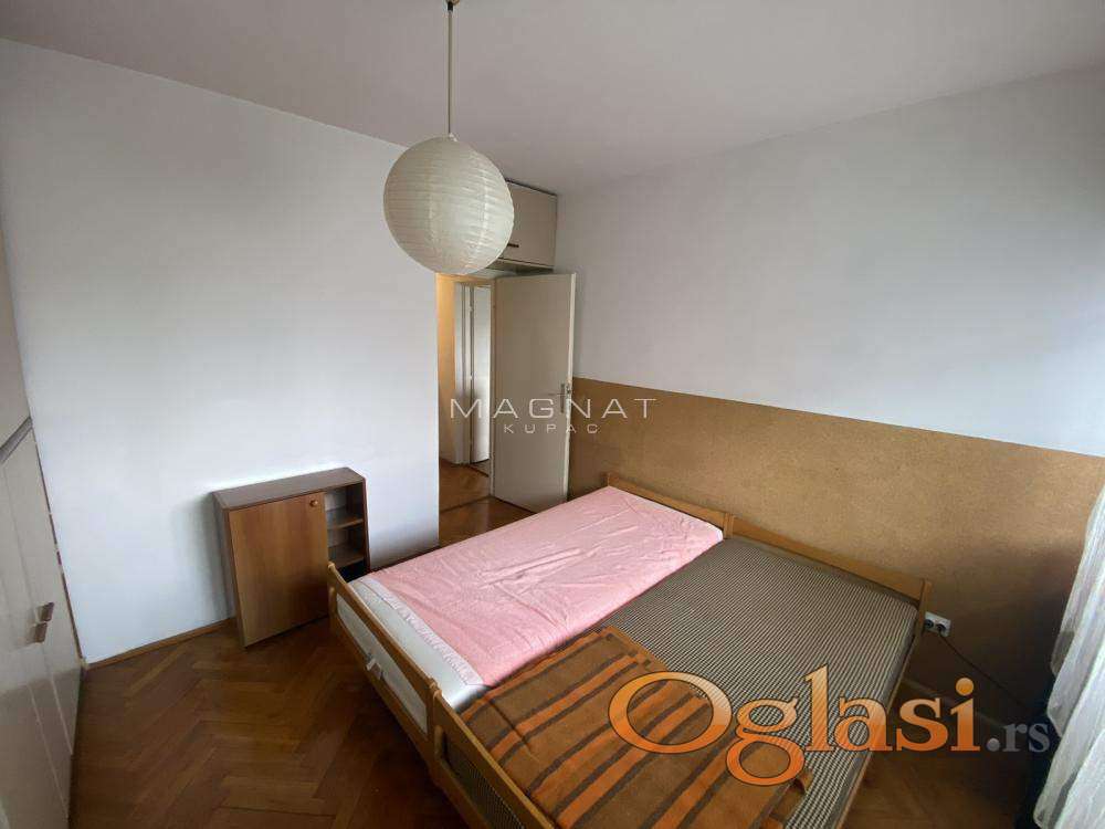 Na prodaju dvoiposoban stan u Vladetinoj ulici, na 6. spratu od 8 u urednoj zgradi sa liftom i centralnim grejanjem.