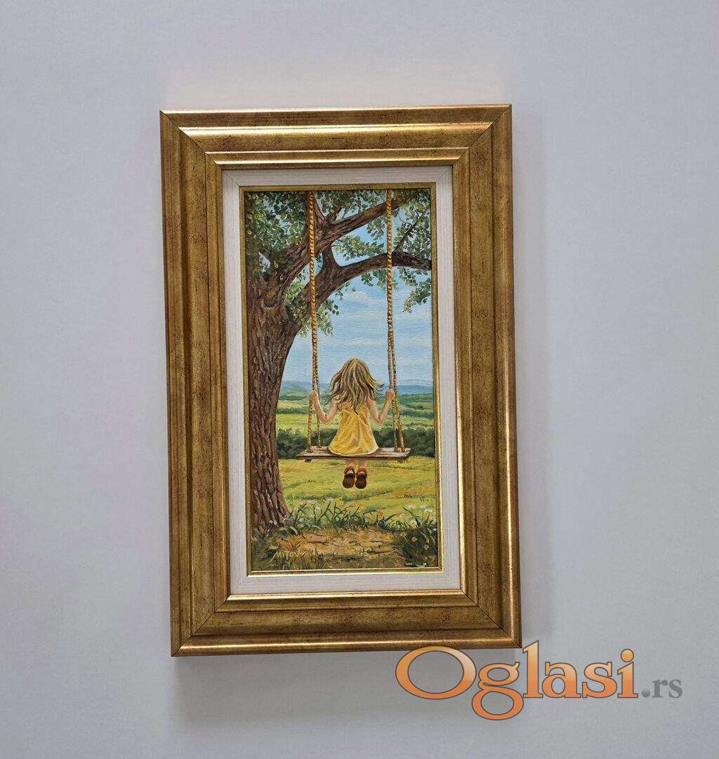 Ulje na platnu Uspomena iz sela - Leto. Prelepo umetnicko delo. Slika je uramljena u jako lep ram, dimenzije slike sa ramom 56 x 36. Privatna kolekcija.
