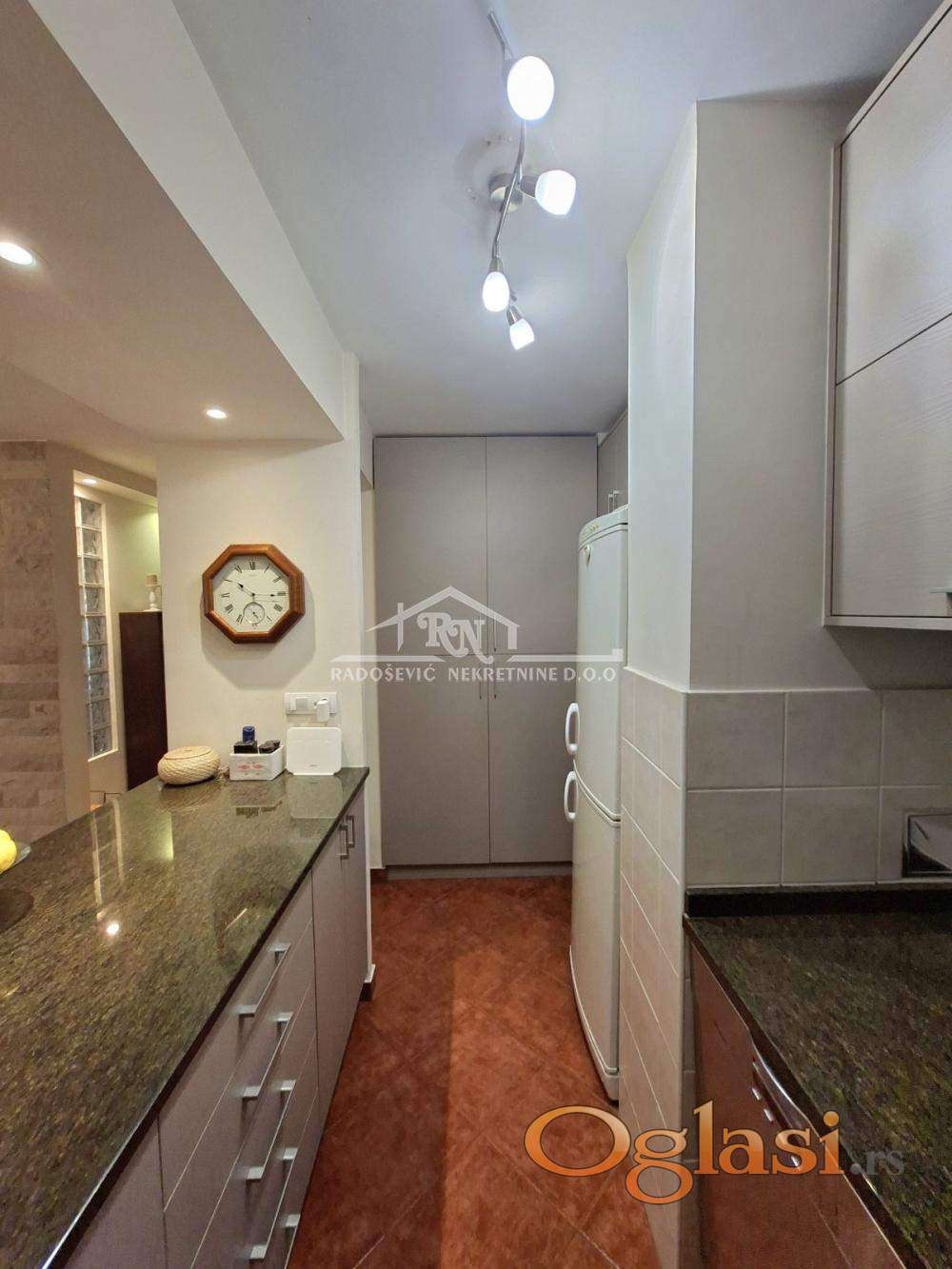 Stan je kompletno renoviran, istočne orijentacije, izuzetno svetao i prijatan za boravak. Odlikuju ga kvalitetni materijali – parket, drvena stolarija od hrasta, kao i klima uređaj.