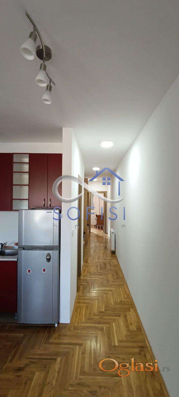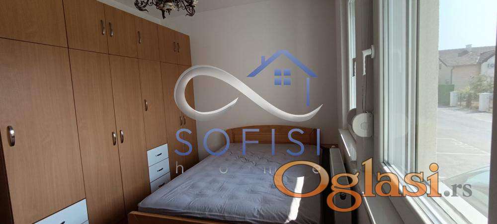 Novi Sad, Adice - Telepska dolina, ulica Jovana Konjovića. Nemešten jednoiposoban stan u naselju Telepska dolina. Visoko prizemlje. Grejanje na gas. Ovaj stambeni prostor čine dnevni boravak sa trpezarijom i kompletno opremljenom kuhinjom (sa prozorom), spavaća soba sa velikim francuskim ležajem, radnim stolom i puno prostora za odlaganje, kupatilo sa kadom i prozorom, hodnik i manja, zatvorena terasa sa izlazom iz boravka. Klimatizovan. Bez televizora. Rezervisano parking mesto ispred stana (vidi se auto iz spavaće sobe). Dvostrano orijentisan. Mala stambena zgrada za svega 4 stambene jedinice. Useljiv odmah. Izdaje se isključivo za jednu zaposlenu osobu ili par koji su nepušači i nemaju kućne ljubimce. Ugovorna obaveza na godinu dana.
