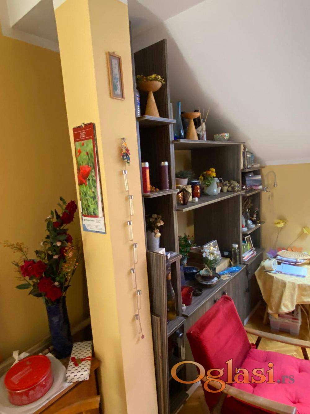 U ponudi je duplex od 67m2 (uknjižen donji nivo od 33m2+tavan 34m2) koji može da funkcioniše i kao dva odvojena stana (dve kuhinje, dva kupatila);