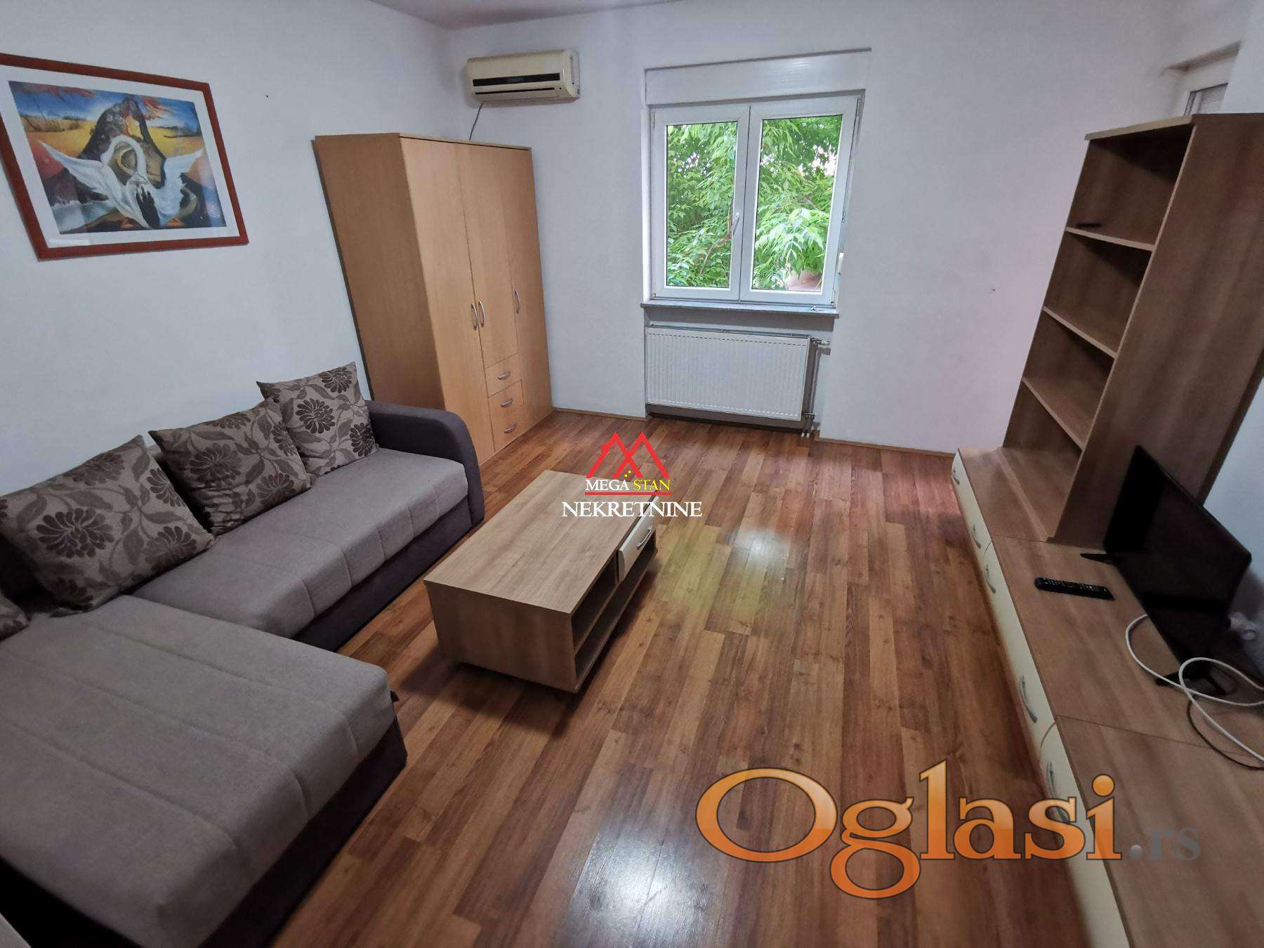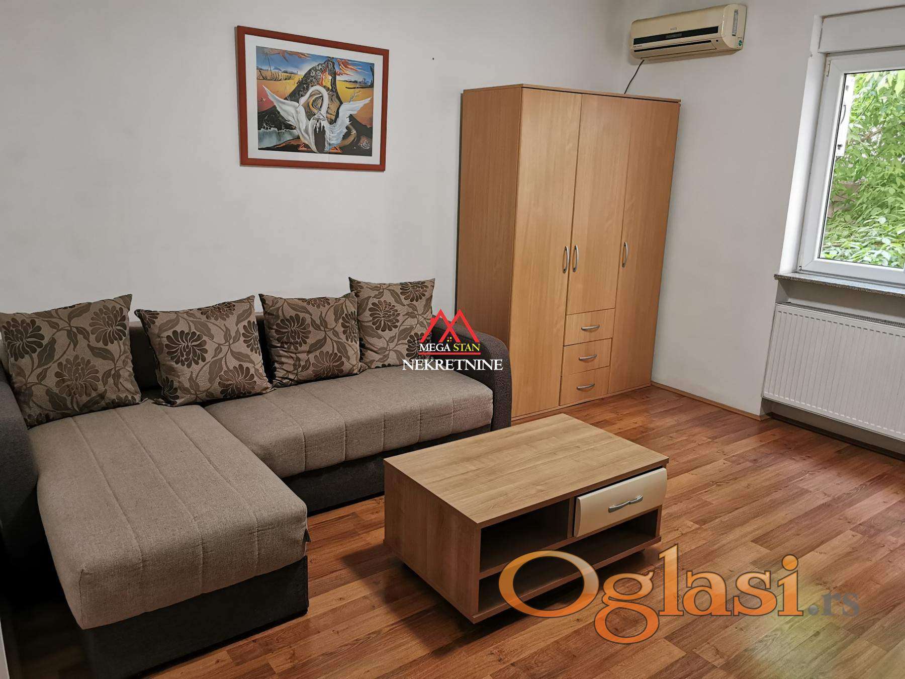 Stan je u potpunosti namešten i opremljen svim neophodnim nameštajem i uređajima za udoban svakodnevni život. Funkcionalnog je rasporeda i pruža prijatan ambijent za boravak.