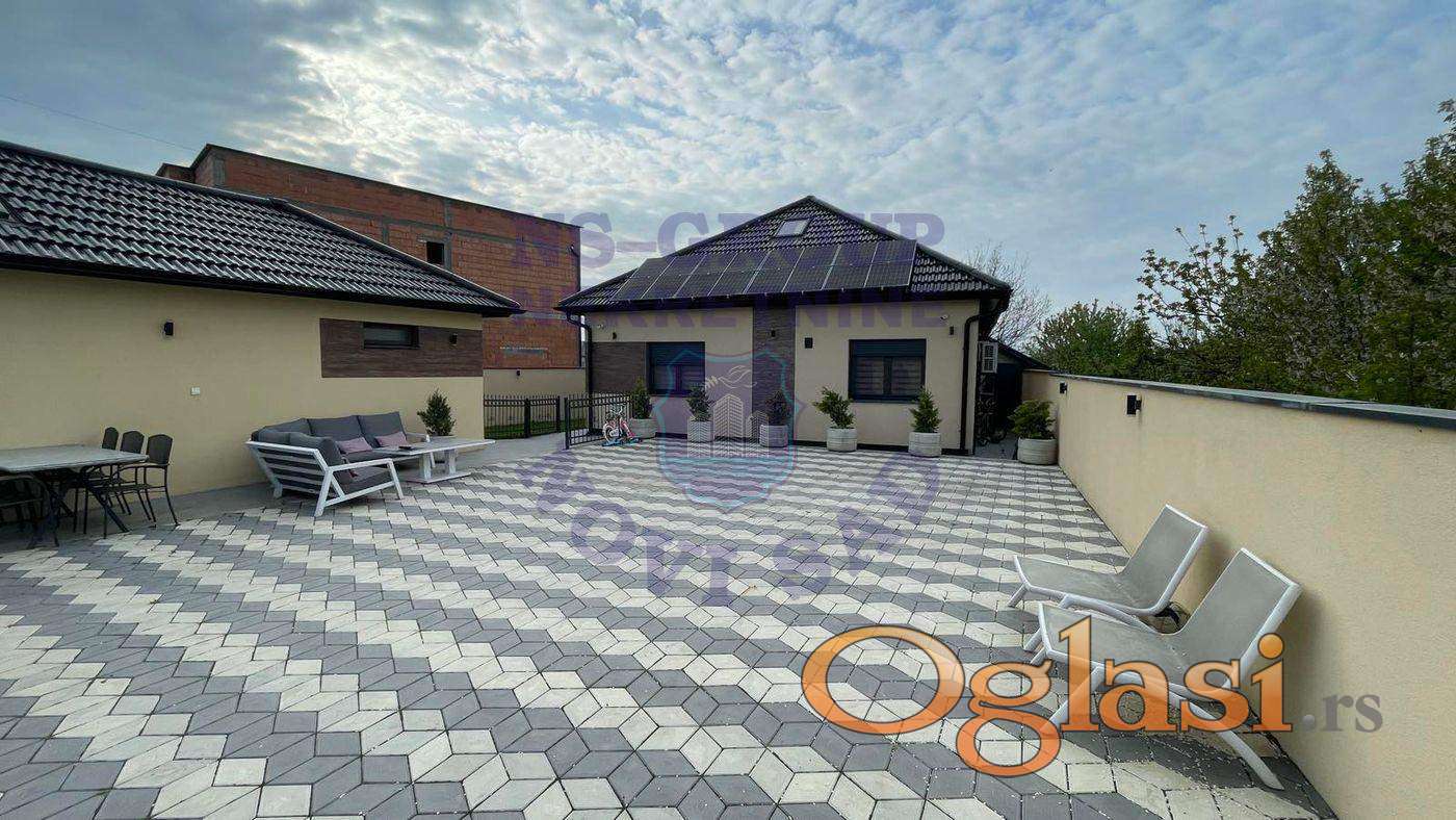 Na prodaju moderna luksuzna kuća površine 165 m², smeštena u mirnom i atraktivnom delu Petrovaradina, idealna je za porodičan život i uživanje u komforu. Kuća raspolaže sa tri prostrane i svetle spavaće sobe, pružajući dovoljno prostora za celu porodicu. Dnevni boravak je otvorenog koncepta, povezan sa trpezarijom i modernom kuhinjom, što doprinosi osećaju prostranosti i funkcionalnosti. Objekat je opremljen podnim grejanjem na toplotne pumpe što omogućava energetsku efikasnost, dodatnu uštedu i ekološku prednost obezbeđuju solarni paneli. Poseban bonus predstavlja garaža koja je preuređena u komfornu gostinjsku sobu, idealnu za posete ili kao dodatni višenamenski prostor. Ova nekretnina nudi savršen balans između luksuza, funkcionalnosti i mirnog okruženja, čineći je odličnim izborom za sve koji traže kvalitetan dom nadomak grada. Za više informacija pozovite naše agente prodaje...