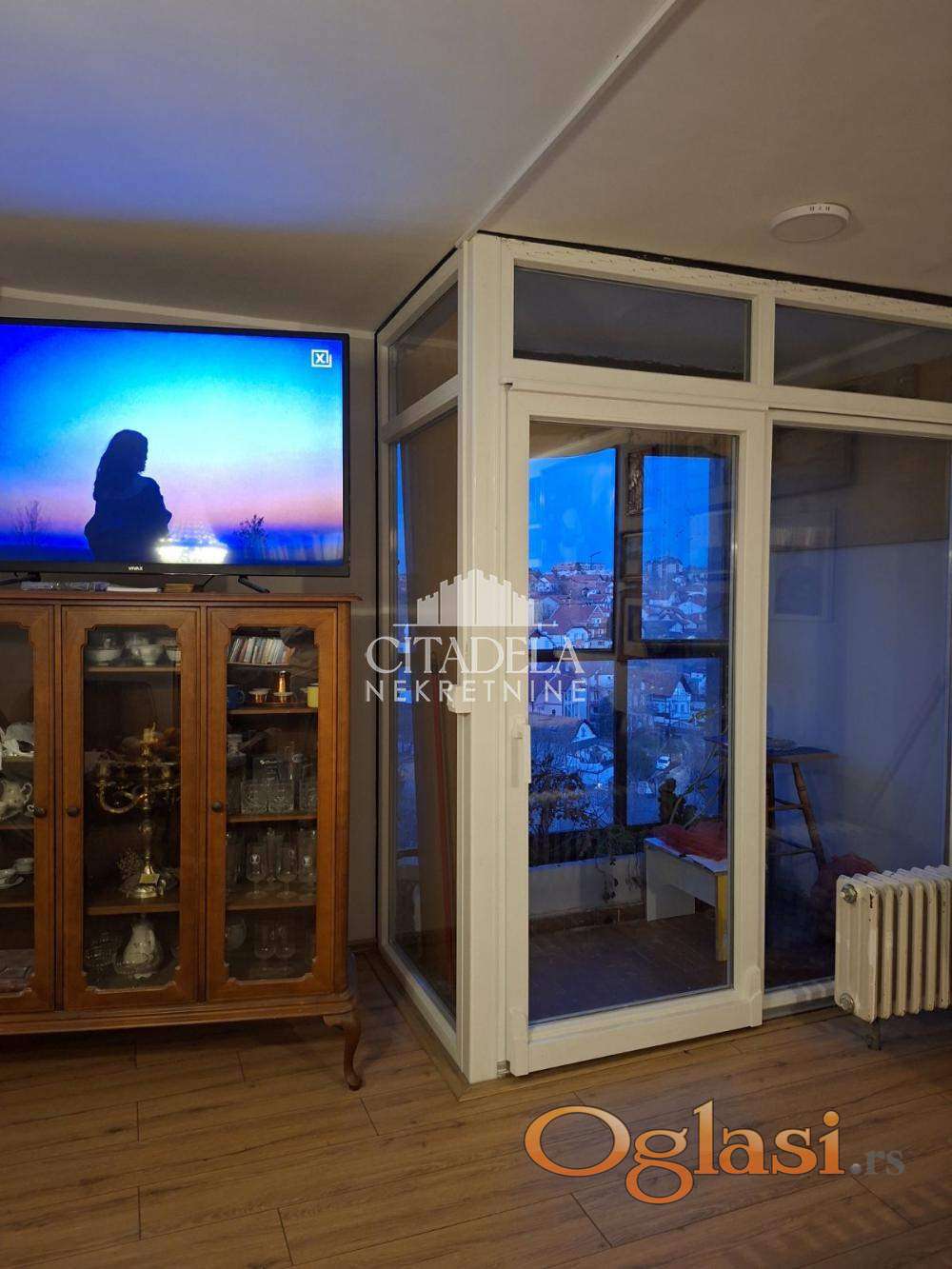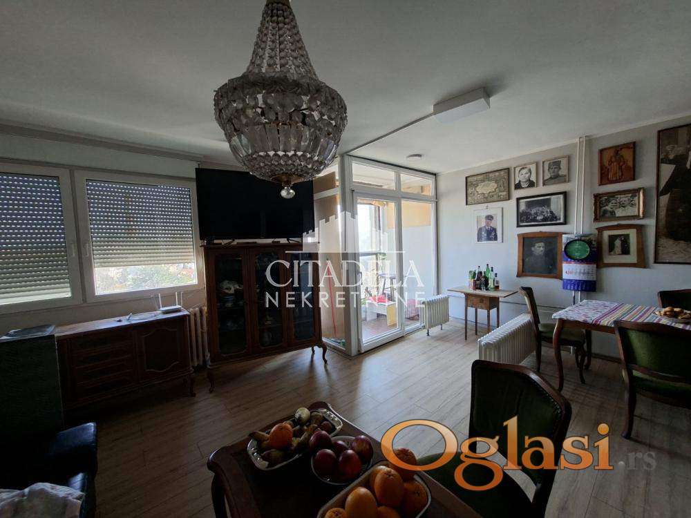 U prilici smo da vam ponudimo stan prostran, komforan na dva nivoa i cela povr[ina stana nadkrivena je pripadajuóm krovnom terasom od 60kvm što pruža velike mogućnosti i svakako prelep pogled. Stan je orjentisan istok-zapad. Izuzetno je svetao i funkcionalan. Odličan raspored prostorija. Zamenjena je spoljna stolarija, stavljen PVC i podovi u donjem nivou. Ostalo je u izvornom stanju i zahteva adaptaciju. Stan ima gražu koja ima svoje grejanje, mokri čvor, hladnu i toplu vodu. Garaža nije uslov za kupovinu stana, moguć dogovor o objedinjenoj ceni. Ovaja stan je za one koji vole visinu, puno svetlosti, prelep pogled i spremni su za adaptaciju. Vrtić, škola, radnje, pijaca, stanica su na pešačkoj udaljenosti.
